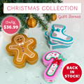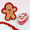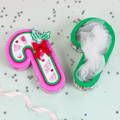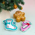 Festive Christmas gift boxes shaped like stockings, candy canes, and gingerbread men, perfect for spreading holiday cheer!
