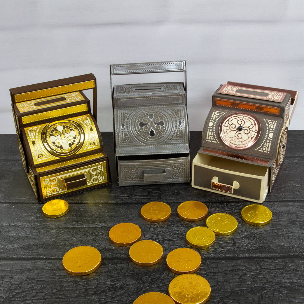 Create a charming vintage cash register gift box featuring a unique handle-activated drawer mechanism—the perfect way to "pay" forward a special gift or surprise.