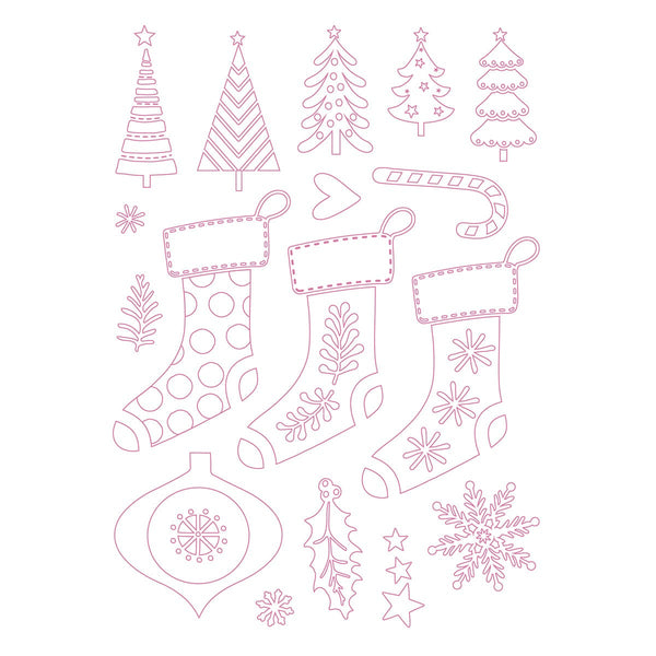 Stamp charmingly naive festive icons with our brand-new A Candy Cane Christmas 6”x8” 3 Stockings Stamp Set! This delightful set features 18 gorgeous clear stamps, each perfect for coloring with your favorite Nuvo consumables!