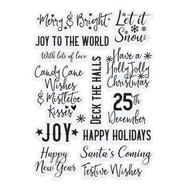 Stamp the perfect sentiment with our brand-new A Candy Cane Christmas 6”x8” Sentiment Stamp Set! This delightful set features 14 clear stamps (13 sentiments plus a handy snowflake), each designed to raise a festive smile!