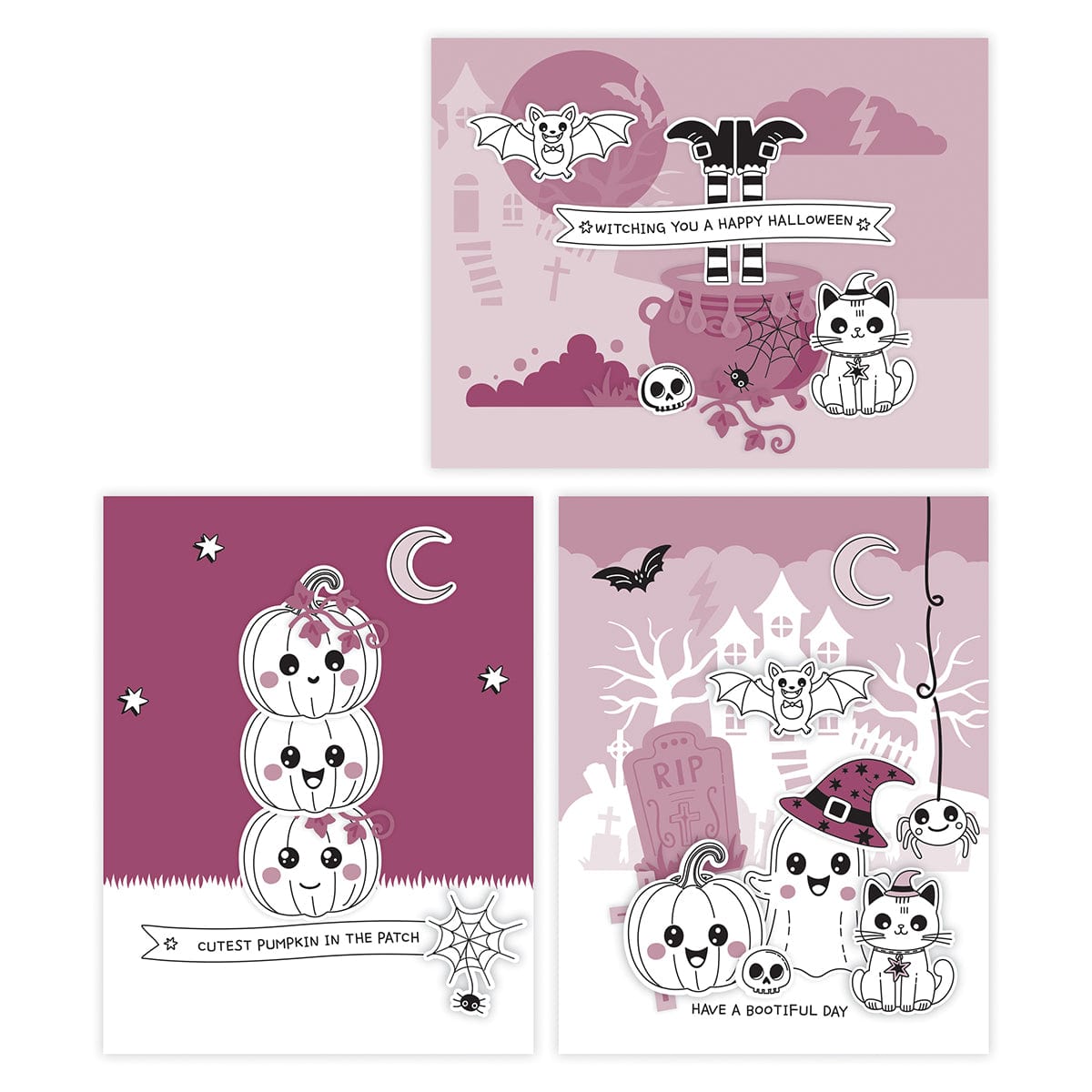 Introducing A Frightfully Friendly Creative Collection! Craft cutesy, haunted, Halloween-themed projects, complete with amusing puns and a spooky house background stencil! Creating complementary delightful cards couldn’t be easier with this all-encompassing craft set!