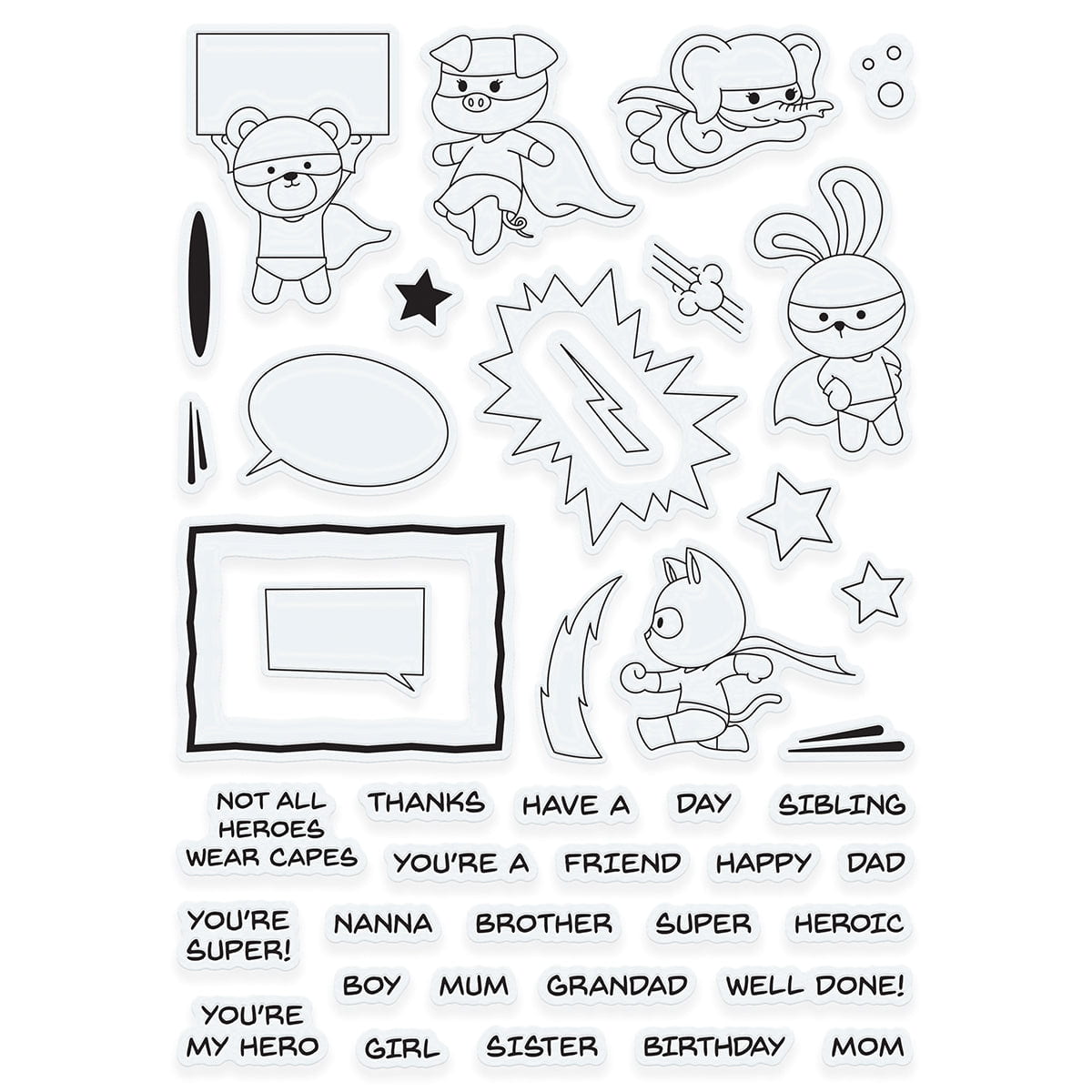 Introducing our Super Heroic Creative Collection! With this collection, you can create delightfully thrilling cards and projects for the heroes in your life. It includes a variety of character stamps and fun puns, along with an awesome city skyline stencil. Crafting stunning cards has never been easier with this all-in-one craft set!