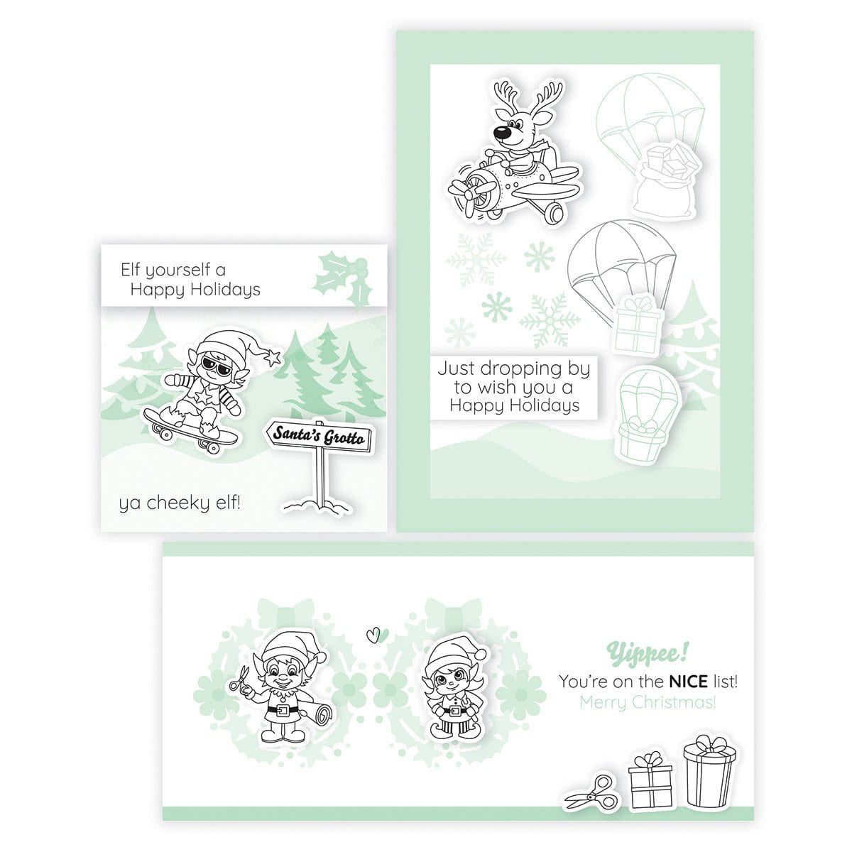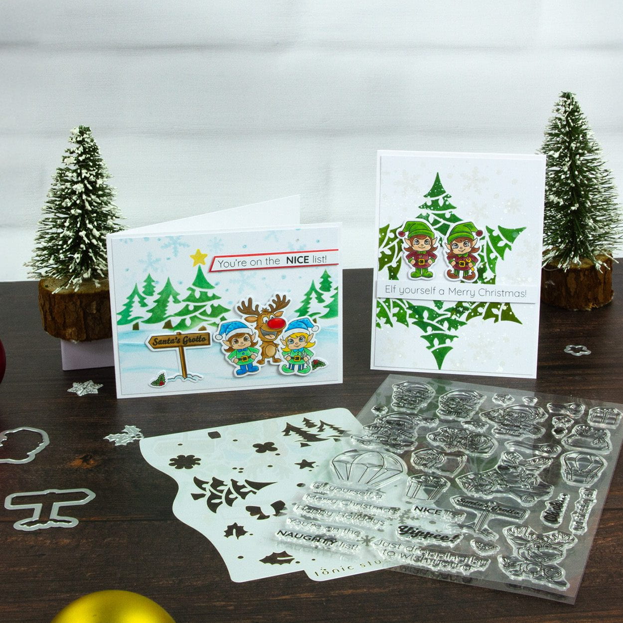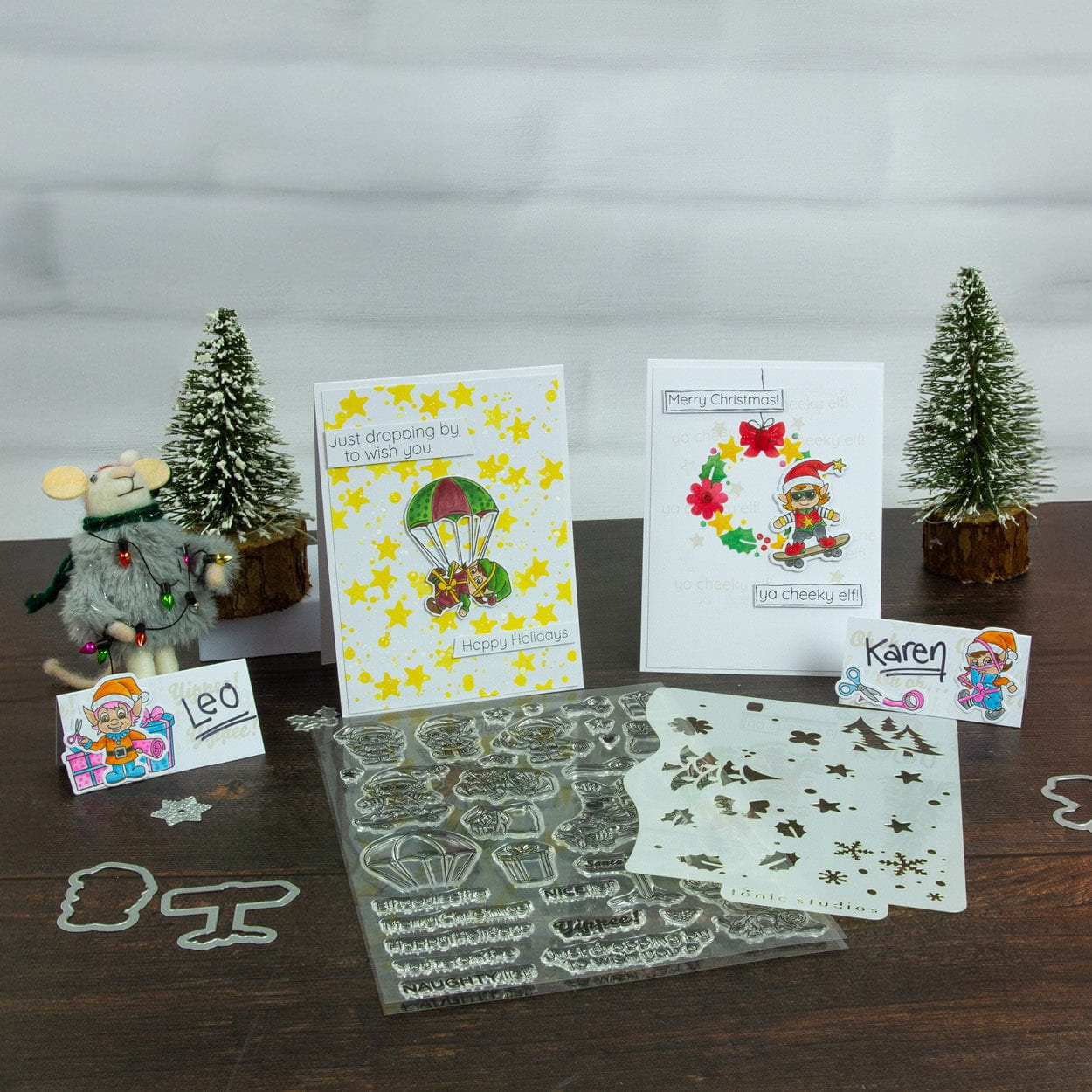 Introducing our Very Elfy Creative Collection! Create delightful, whimsical Festive and Holiday-themed projects, complete with fun pun stamps and an ingenious background stencil! Creating complementary Christmas cards couldn’t be easier with this all-encompassing craft set!