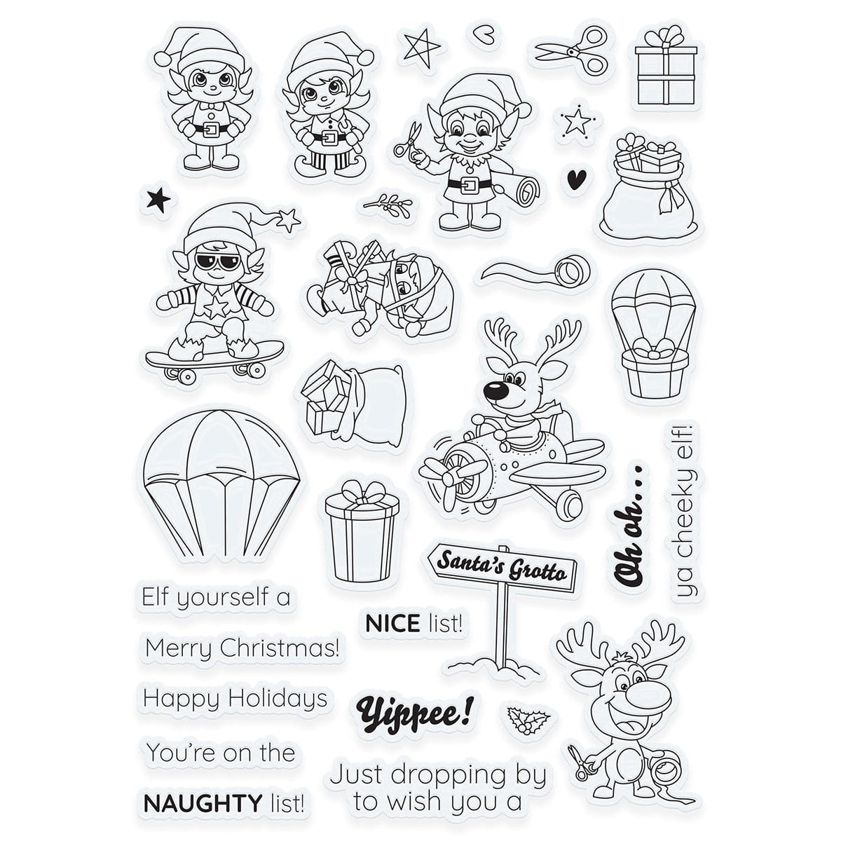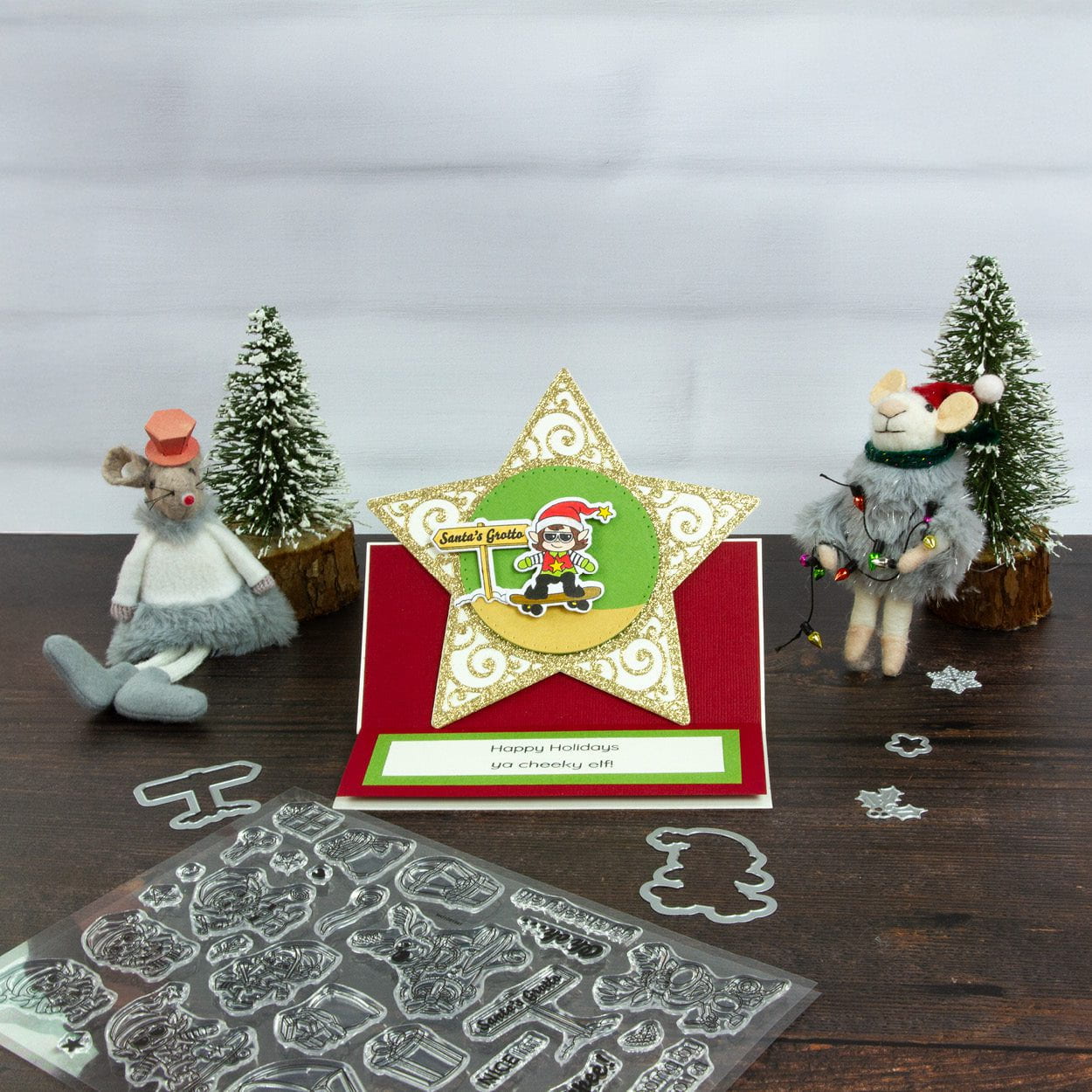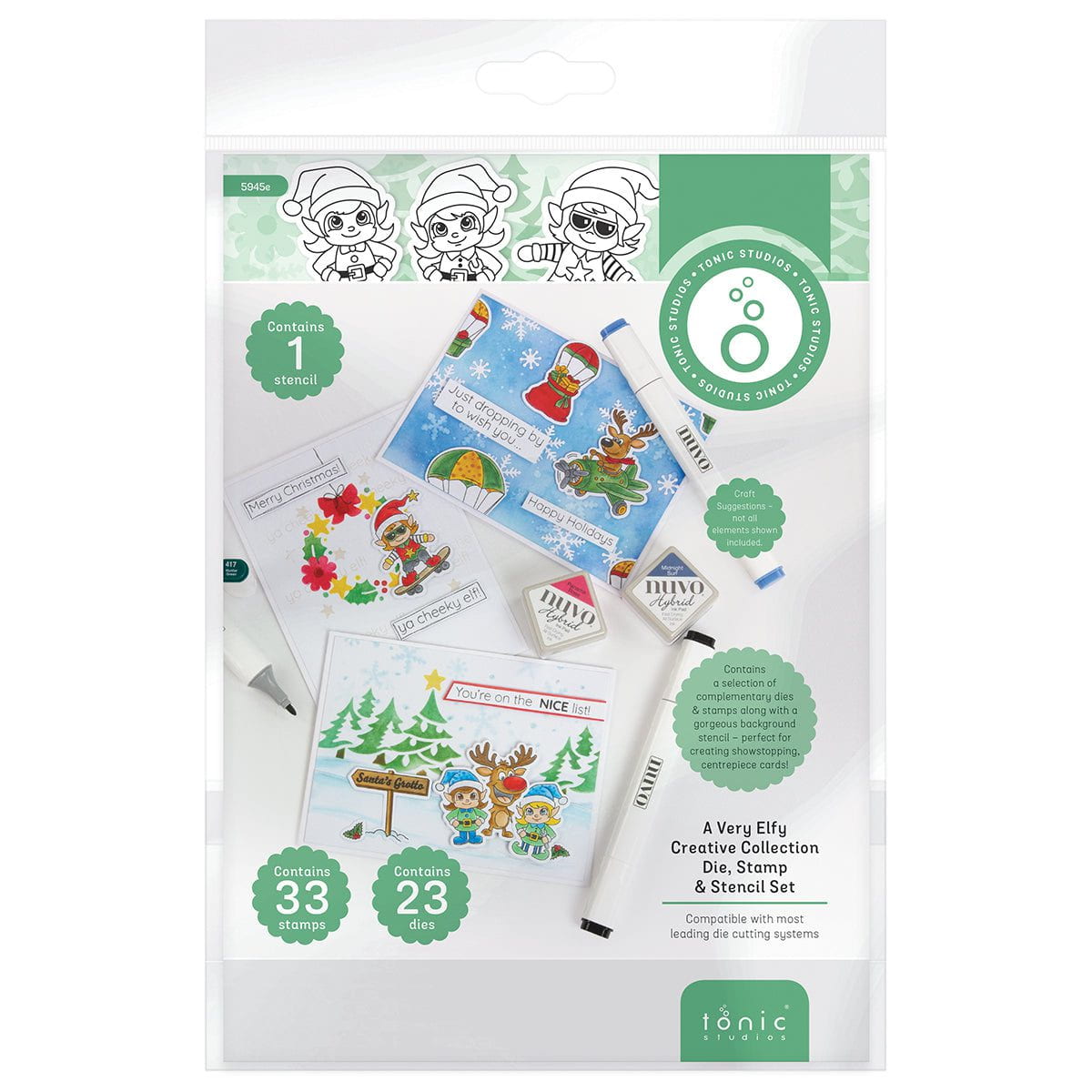 Introducing our Very Elfy Creative Collection! Create delightful, whimsical Festive and Holiday-themed projects, complete with fun pun stamps and an ingenious background stencil! Creating complementary Christmas cards couldn’t be easier with this all-encompassing craft set!
