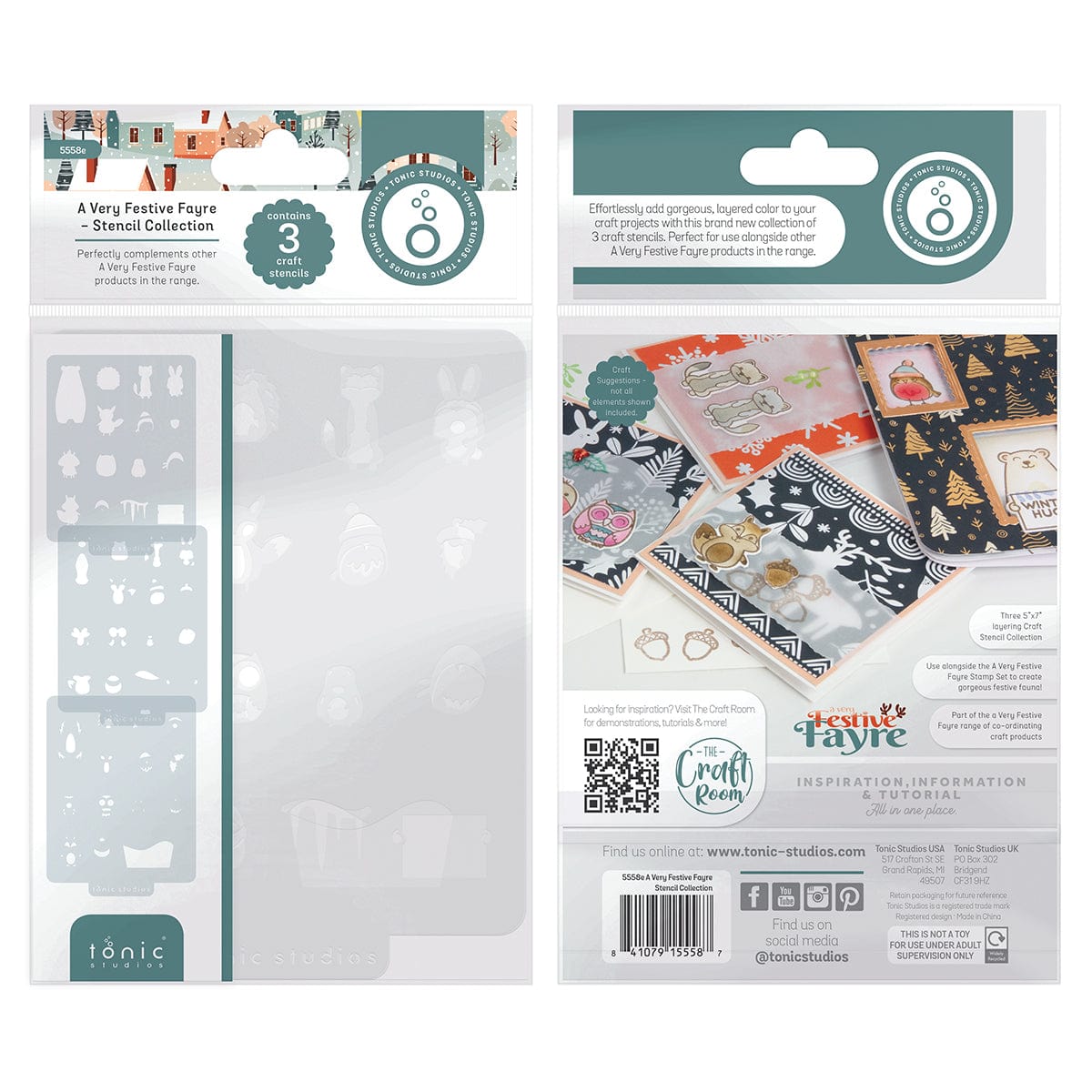 Effortlessly add gorgeous, layered color to your A Very Festive Fayre stamped characters with this brand-new collection of 3 craft stencils. Perfect for use alongside other A Very Festive Fayre products in the range.
