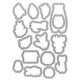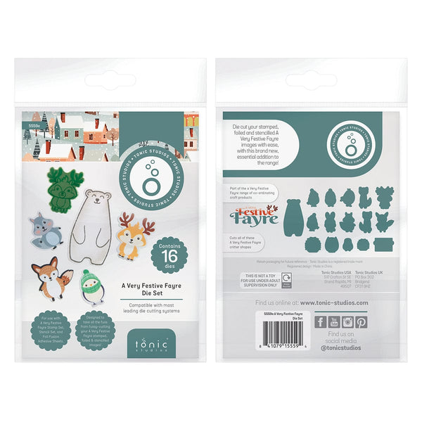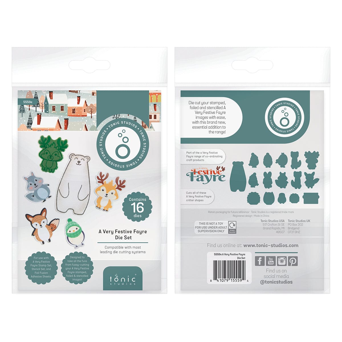 This die set includes all the essential fussy-cut dies you need to bring your A Very Festive Fayre stamped, stenciled and foiled characters to life!