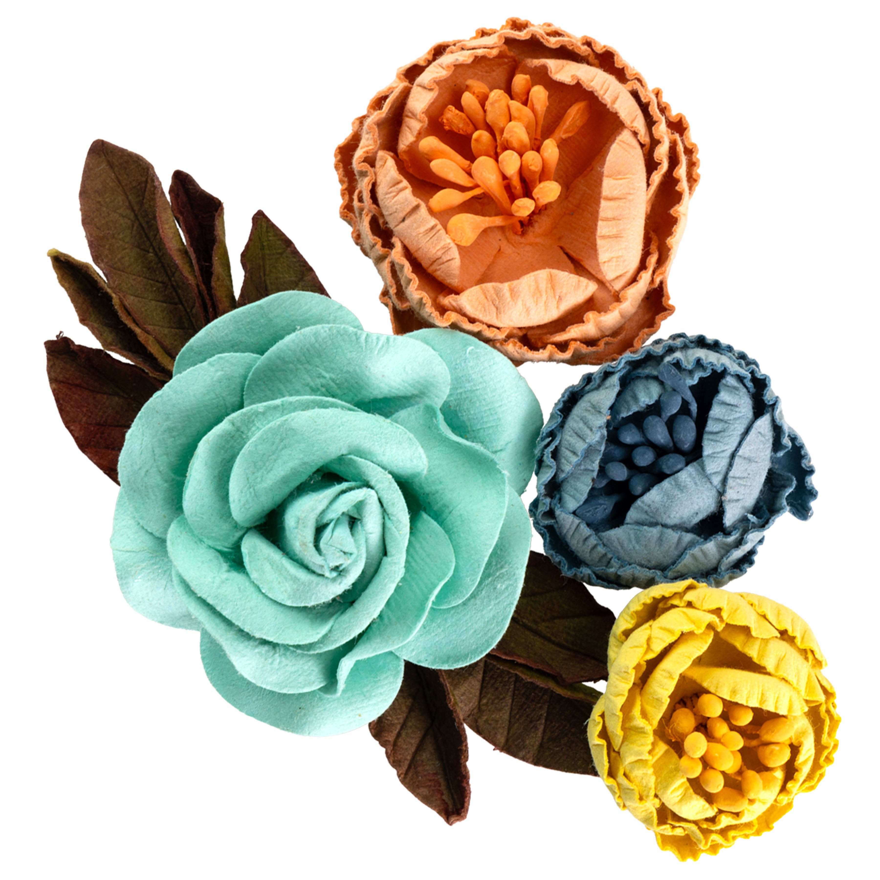 Billie Mixed Paper Flowers offer a colorful mix of blooms for your next project. With one large rose and three smaller peony flowers, Billie offers both interest and unique floral texture. Embossed petals, bountiful clusters of stamens on each peony, and accent leaves on the rose round out this gorgeous floral embellishment.