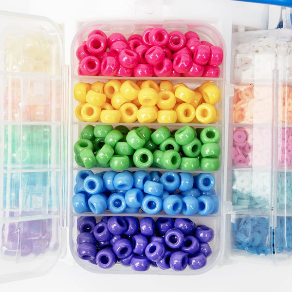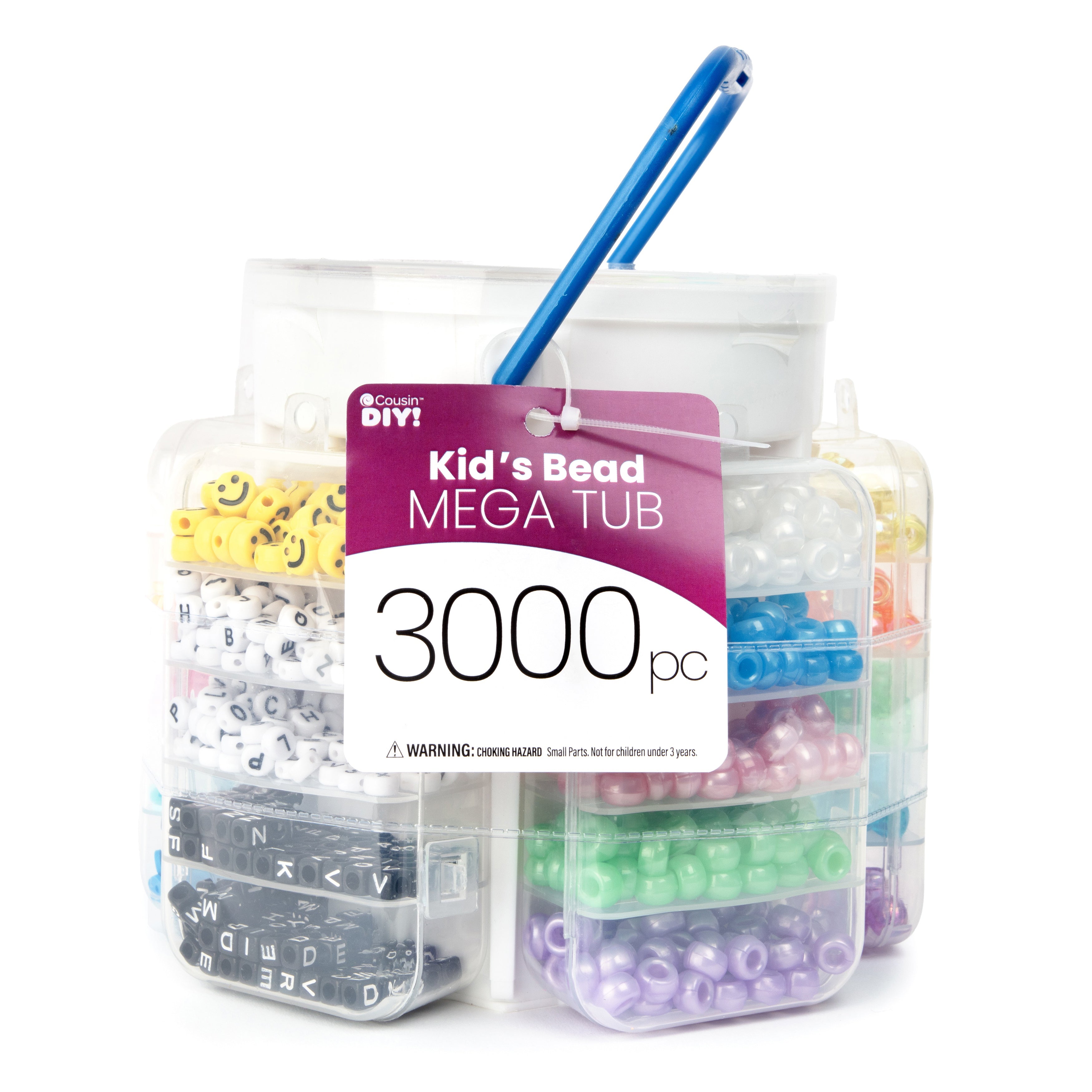 Dive into a Sea of Colors! The Kids Bead Mega Tub from CousinDIY is a treasure trove of multicolored beads. Perfect for endless crafting fun with easy portability. This package contains one tub of beads in assorted sizes and colors.