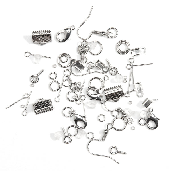 ✓ Findings: Clasps, pins, fishhook earrings, bails, split rings, jump rings, and ends