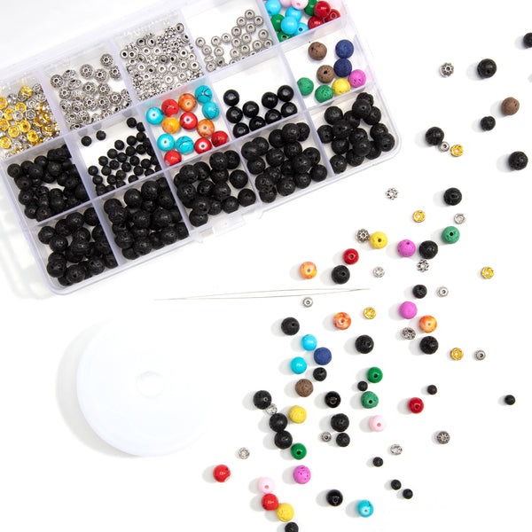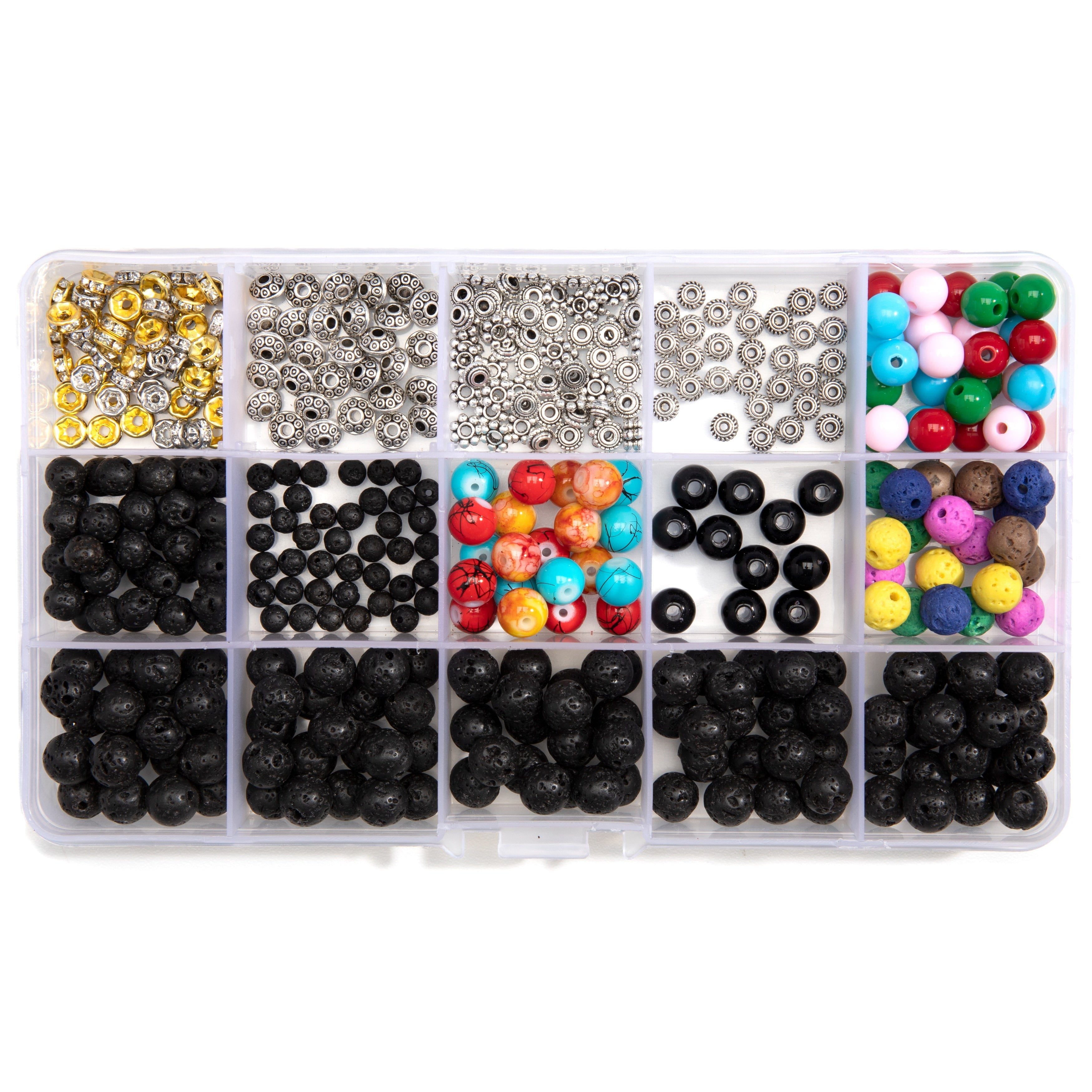 Get started making bracelets and jewelry pieces right out of the box! This is the perfect starter kit for jewelry making with chic black lava beads and coordinated accent beads. Plastic storage case has 15 compartments for different size lava beads, stone beads and metal spacer beads in different styles. Stretch cord and beading needle included. Imported.
