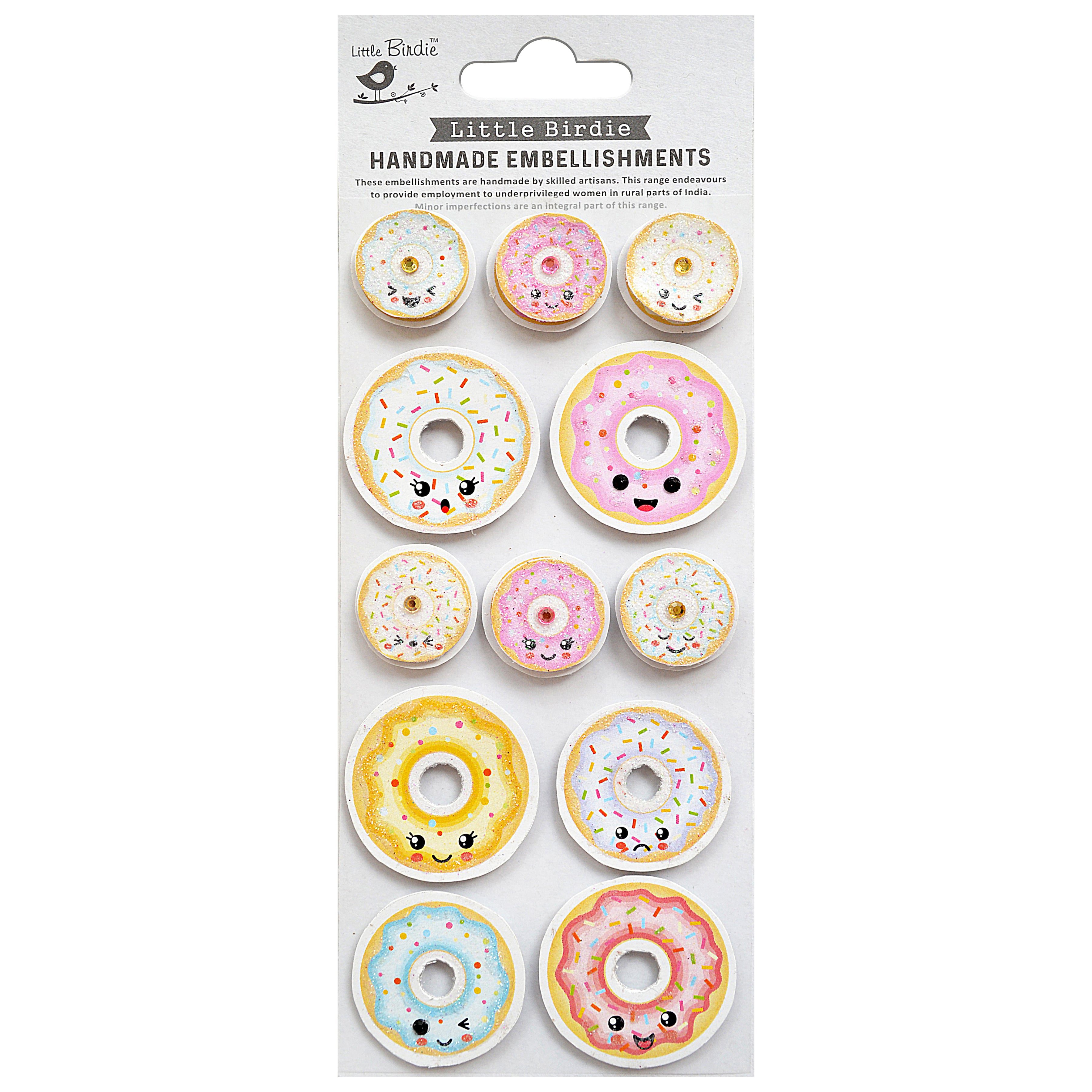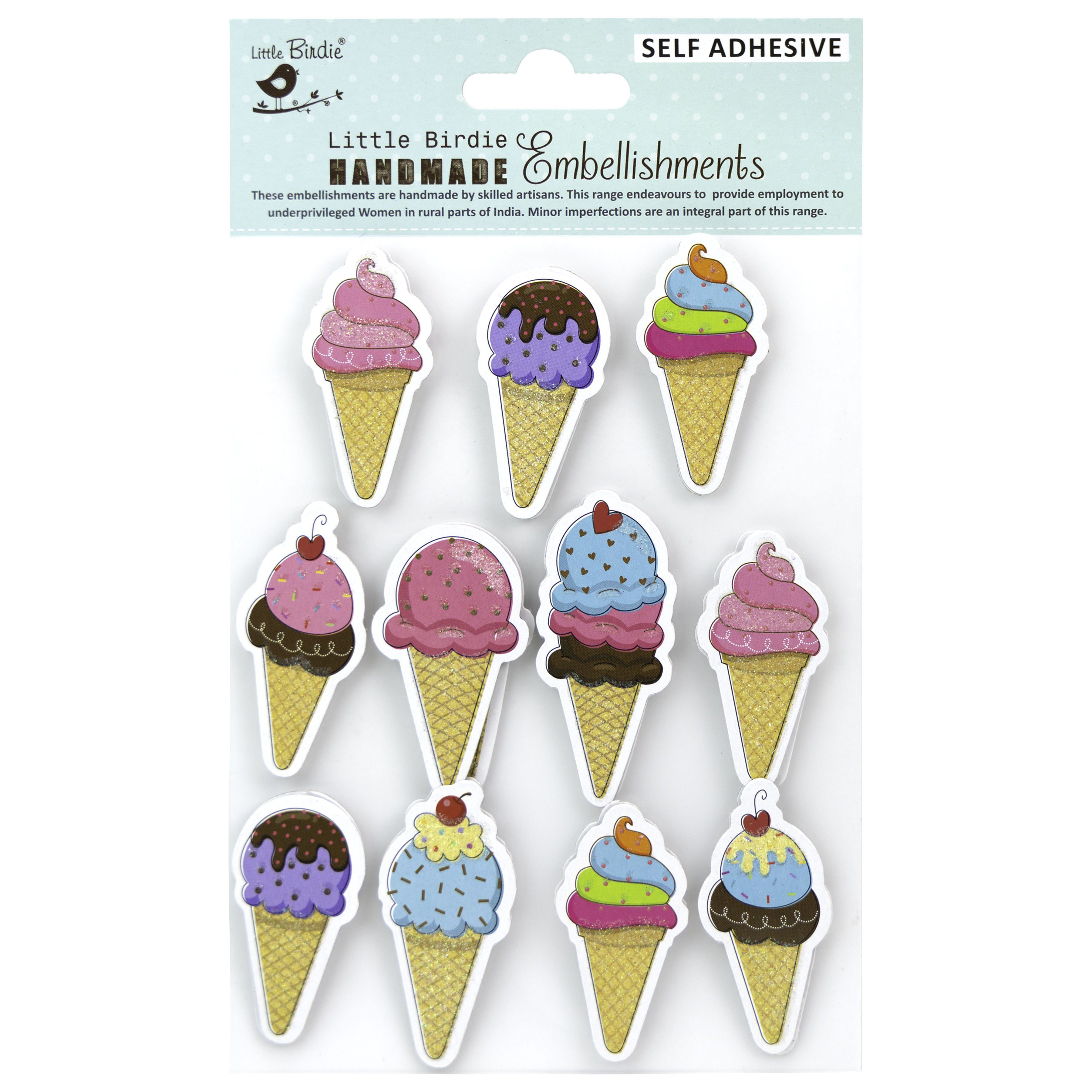Sweeten up your paper crafts - handmade cards, scrapbook layouts, albums, journals, home decor and more - with these food-themed Little Birdie sticker embellishments. Just peel and stick to adhere these colorful adhesive embellishments to add beautiful details to your next project.