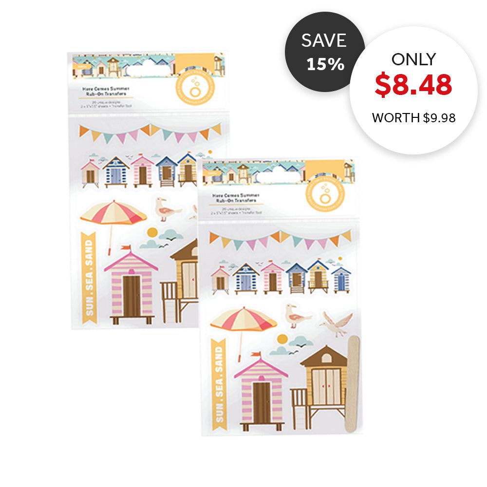 Here Comes Summer Rub-On Transfers - 2 Pack