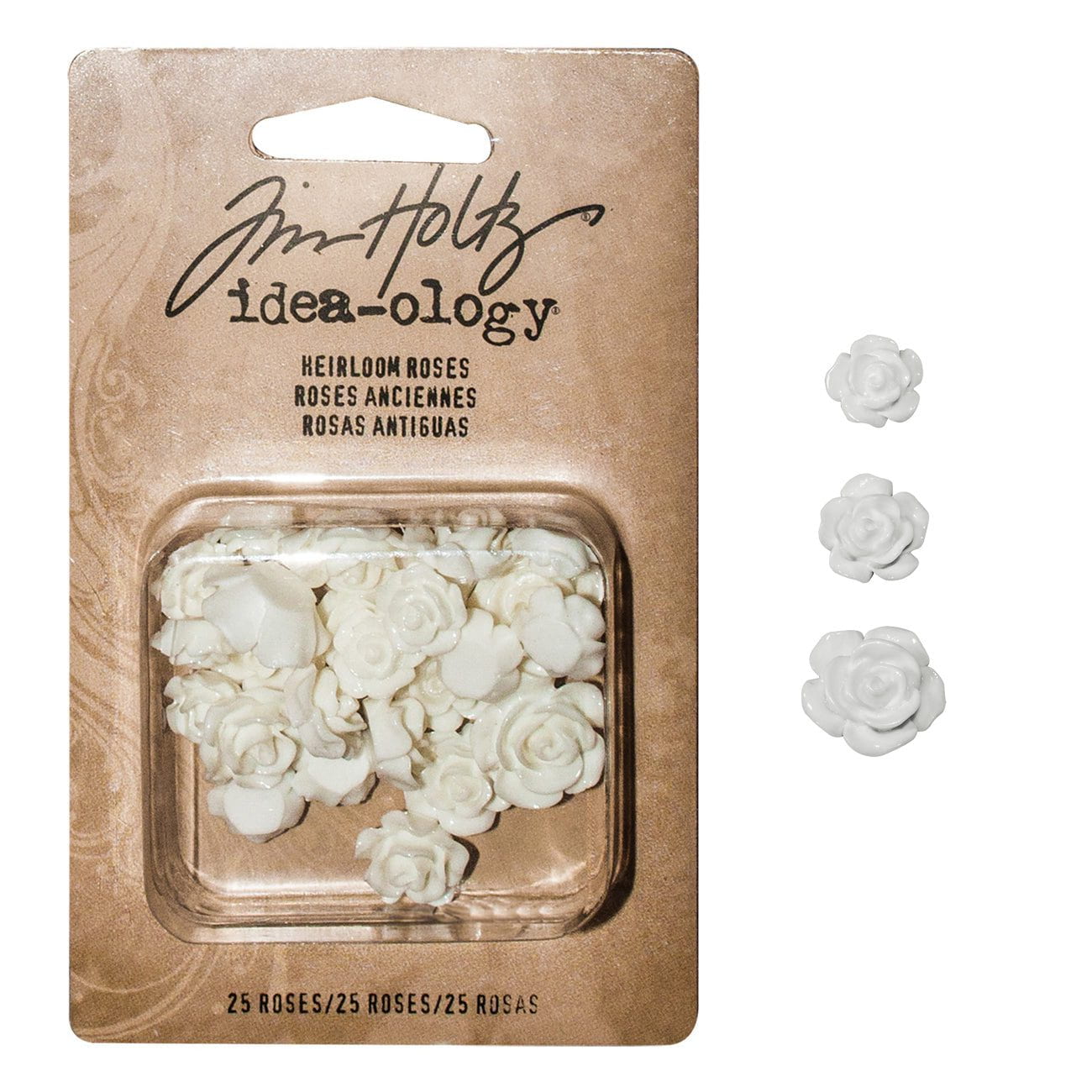 Paint or ink these Tim Holtz mini roses to make your crafting projects bloom! This package contains twenty-five heirloom roses measuring between 1/4 inches and 1/2 inches round. Imported.