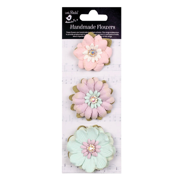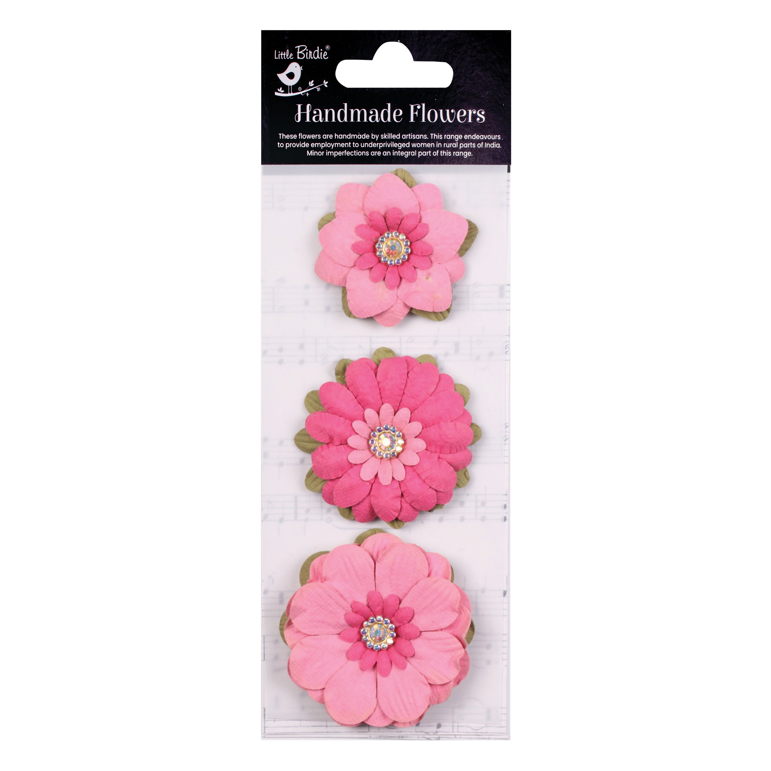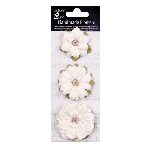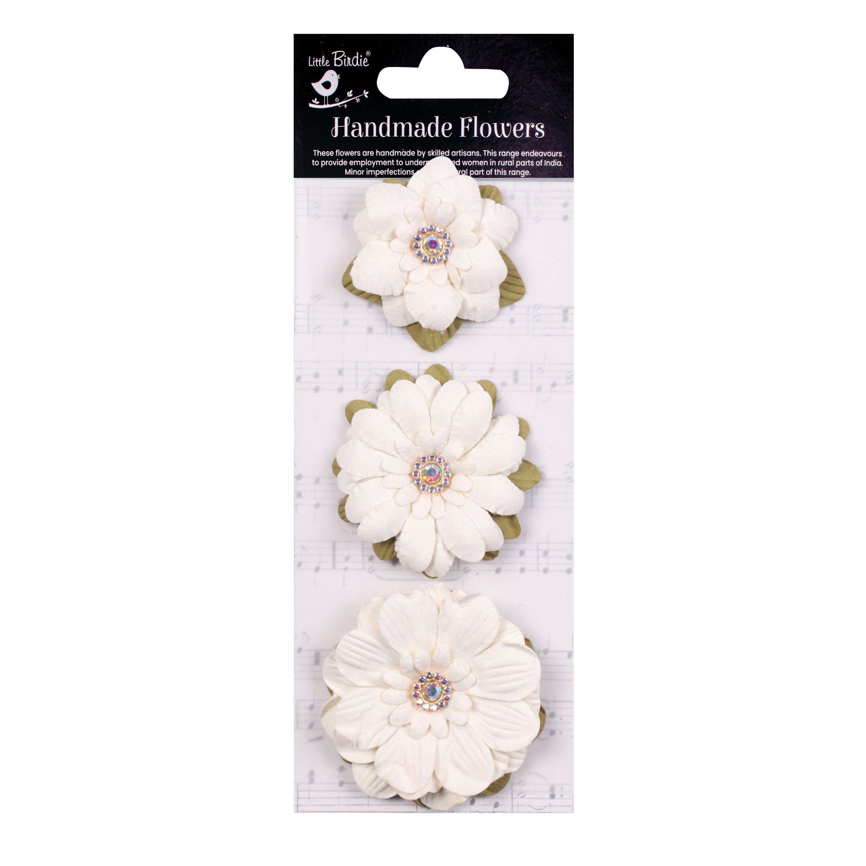 Enhanced with beautiful jeweled centers, the Jeremy Paper Flowers from Little Birdie are the perfect addition to a special project. Our Jeremy flowers offer three complementary flowers with differing shapes and sizes, all with beautiful embossed details.