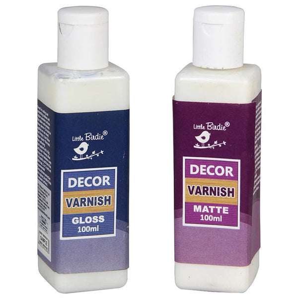 Décor varnish is available in your choice of Glossy or Matte finishes. Each bottle contains 100mL of water-based varnish.