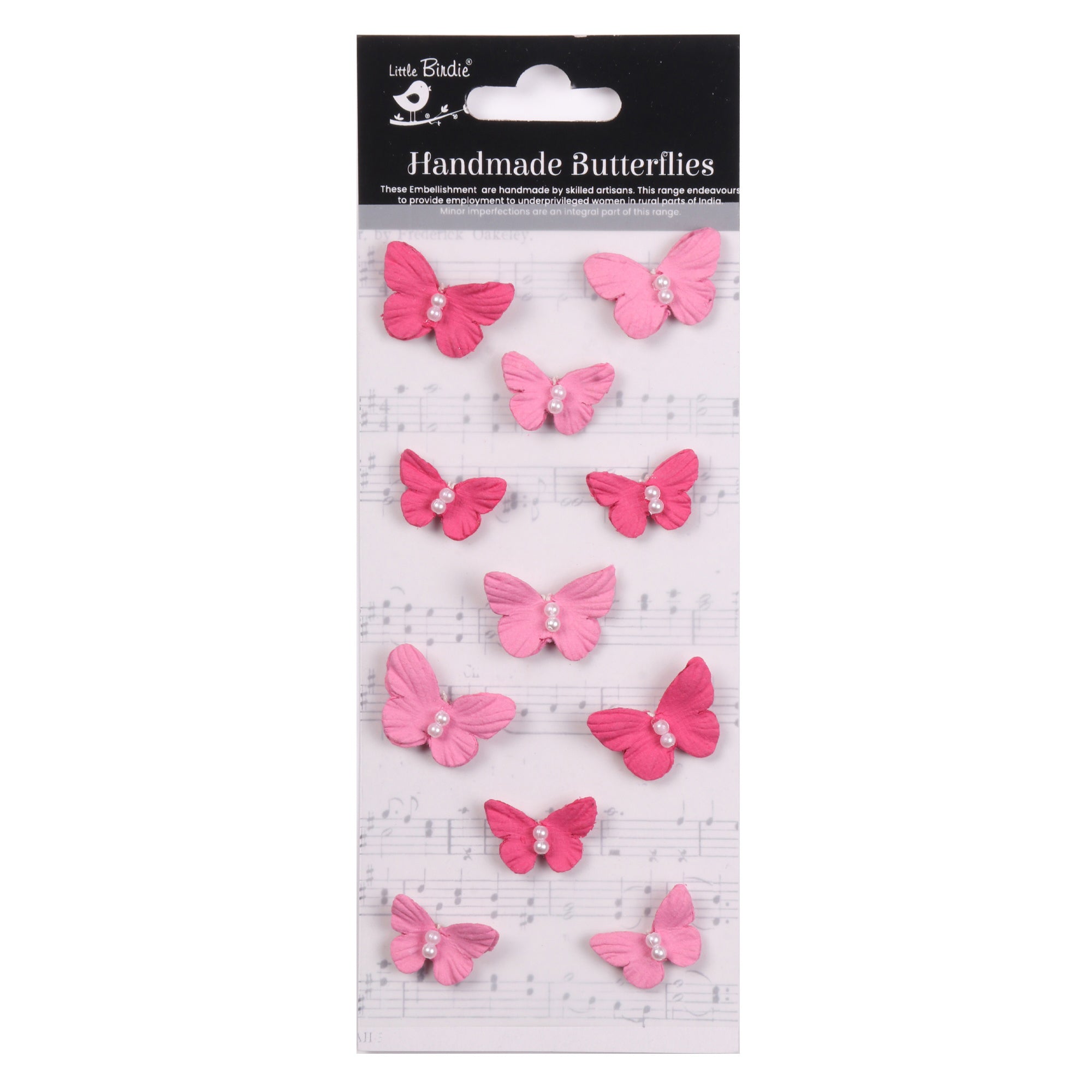 Elevate your crafting projects with Little Birdie Pearl Butterflies. Each package includes eleven charming butterflies with dimensional wings and pearl details. Antennae match the double pearl bodies on these small butterfly accents.