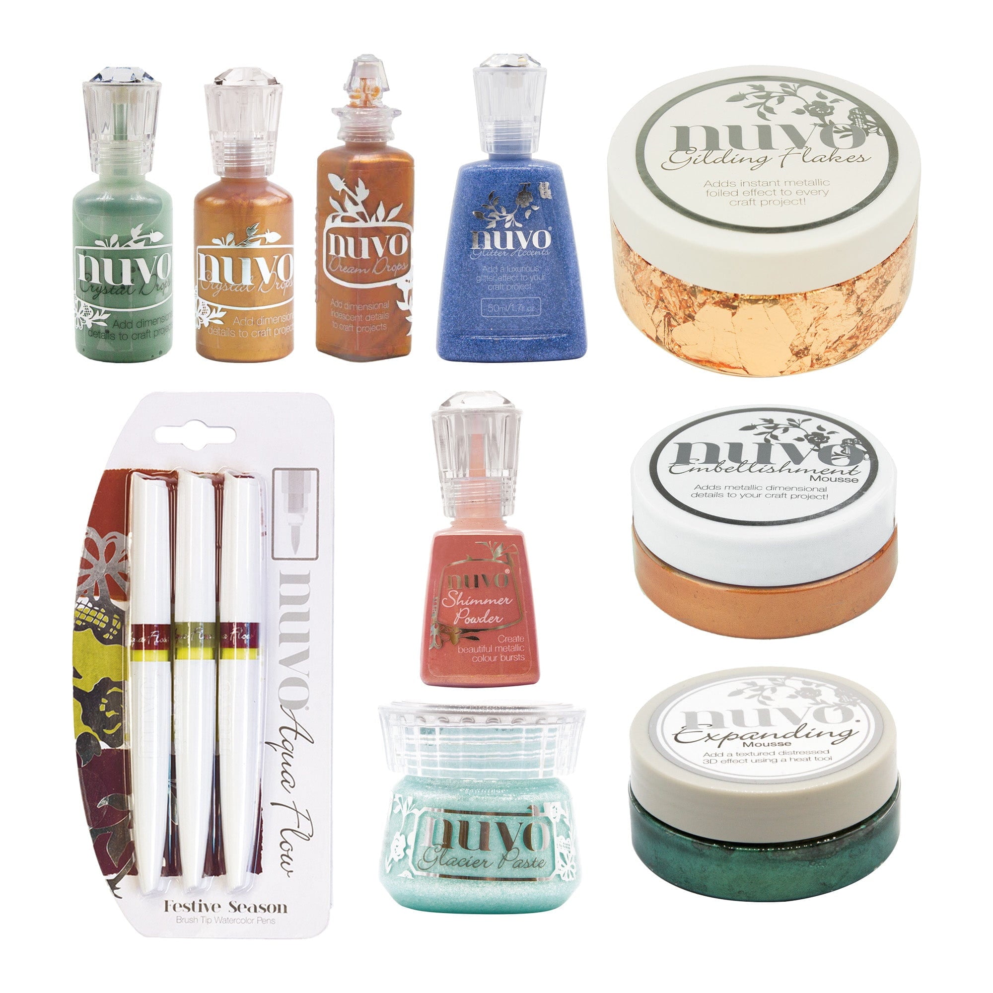 Transform your creative projects with the versatile Nuvo Mousse range. Whether you’re looking to add shimmering highlights, rich texture, or rustic crackled effects, this collection offers a mousse for every mixed media need. Each mousse is infused with highly pigmented mica powder for a beautiful, lustrous finish and can be applied with or without stencils. Ideal for cardmaking, journaling, and all your dimensional designs.