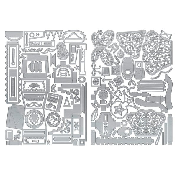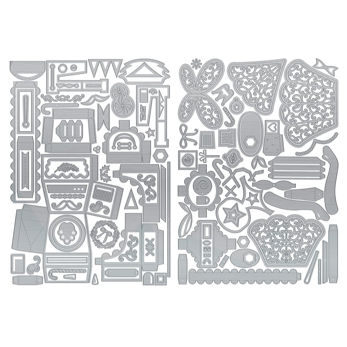 Introducing an exciting new addition to the Dimensions range! This unique collection is perfect for creating eye-catching festive gift boxes, tree ornaments, and table decorations. This outstanding set includes 129 dies specifically designed to craft festive-inspired gift boxes. Fill these delightful boxes with treats and sweets, decorate them with intricate panels, and accessorize them before hanging them on your tree or gifting them. Let your creativity shine this holiday season!
