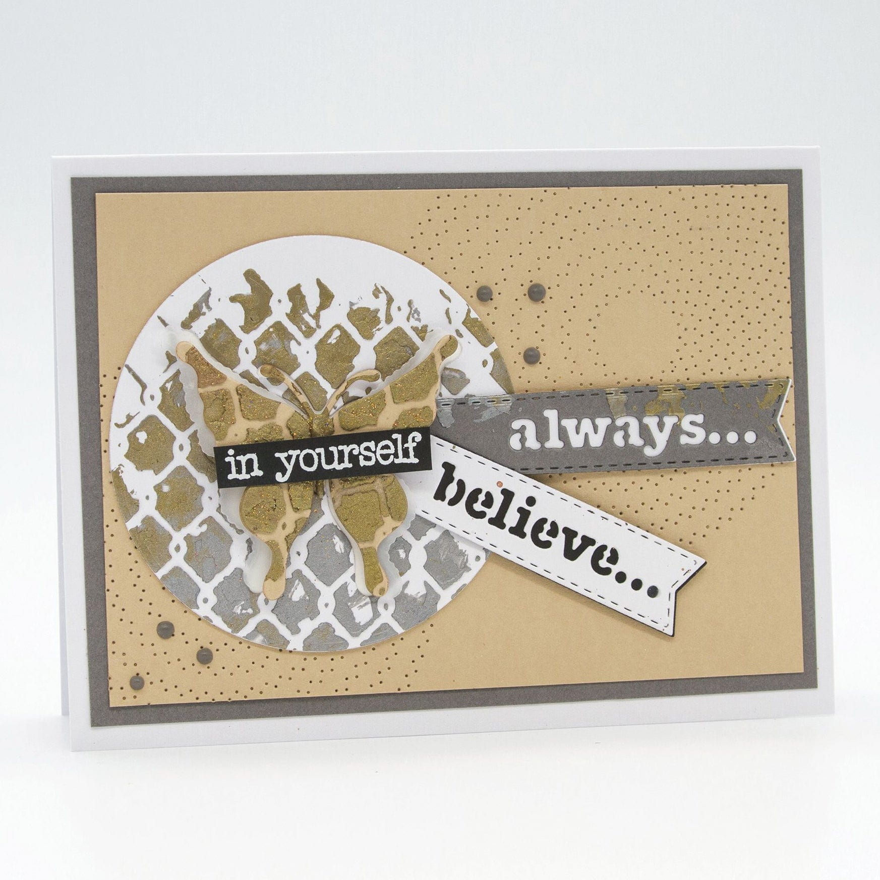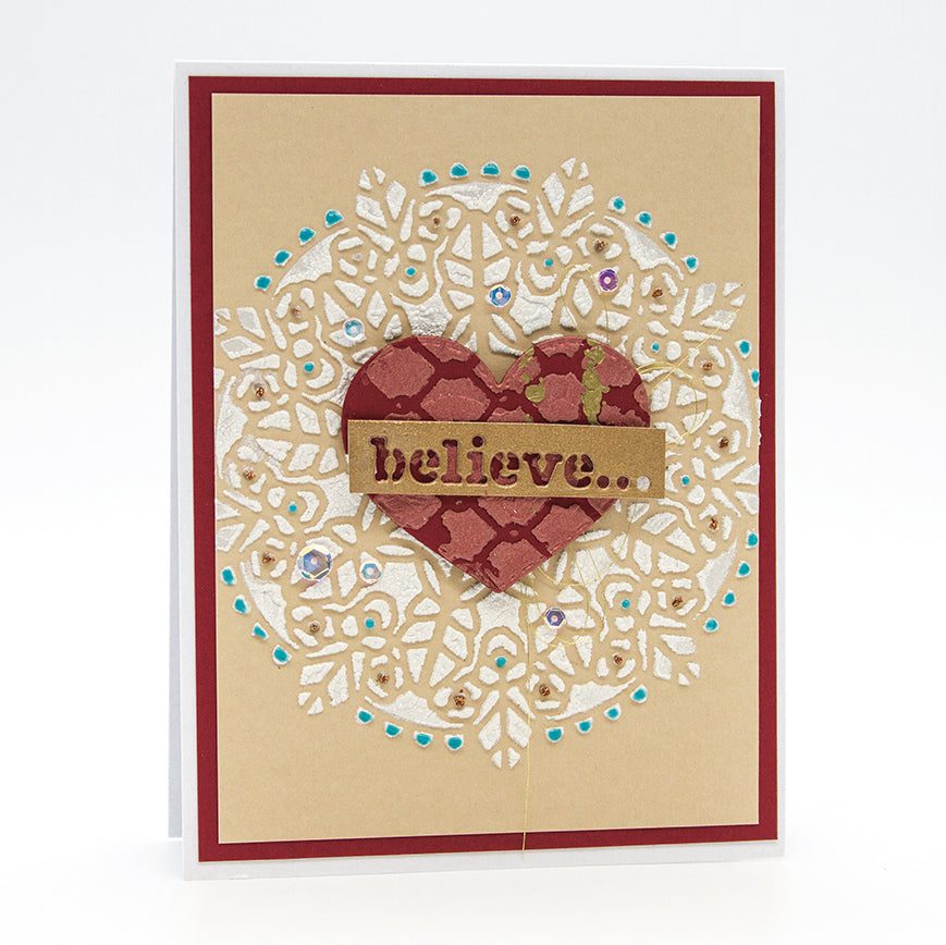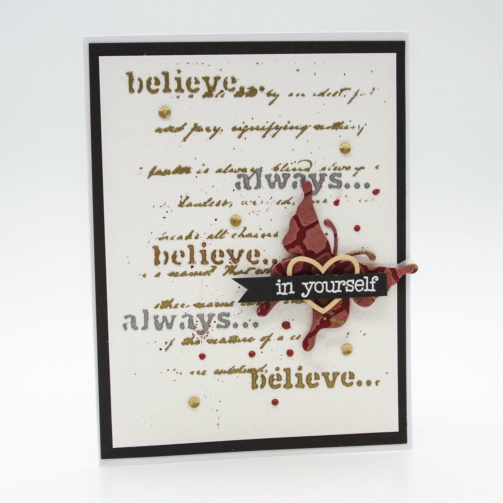 The Nuvo Expanding Mousse is perfect for adding unique textured details to your mixed media cards and projects. Available in a variety of various metallic colors that provide a lustrous shine thanks to the highly-pigmented mica powder. It can be used as a normal embellishment mousse with or without a stencil. When heat is added, the mousse expands and is covered with a bubbled texture. It's a fun way to add texture, and even create wet-look effects.