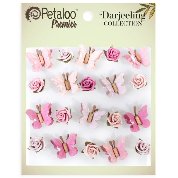 Petaloo Handmade Roses & Butterflies from the Darjeeling Collection offer a beautiful mix of blooms and butterflies for your next craft. Wooden bead centers, embossed wings, and stamen-like antennae help these craft butterflies coordinate well with the paper roses included. Each package includes 20 pieces - 10 paper roses, plus 10 paper butterflies.