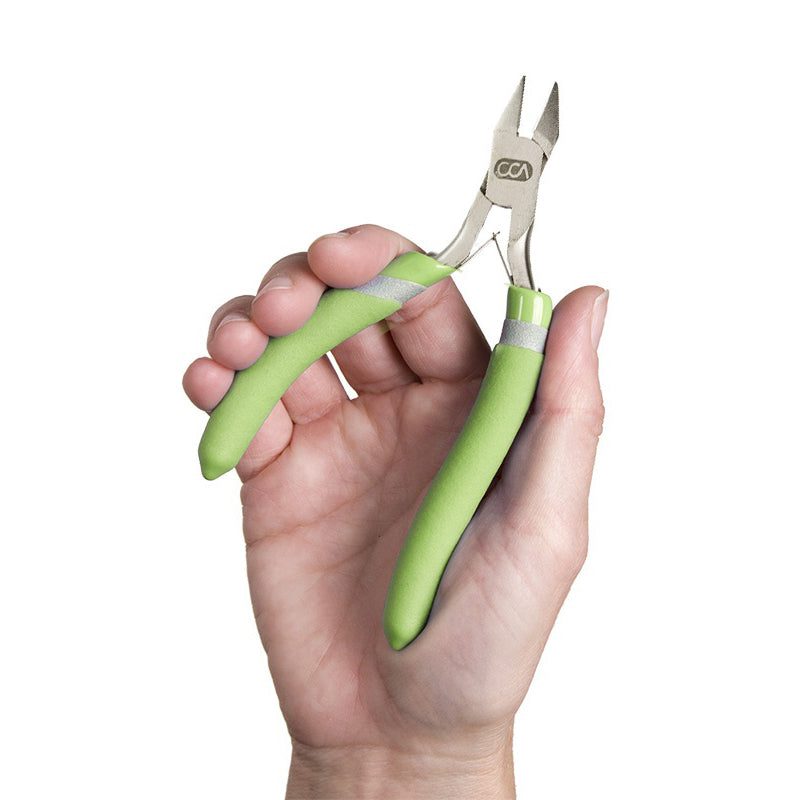 This set of cutters is part of the CousinDIY Precision Comfort line which was designed with an ergonomic handle to reduce stress. Great for accuracy and closeness in wire cutting and many other tasks in your jewelry making. This package contains one flush cutter with padded comfort handles. Imported.