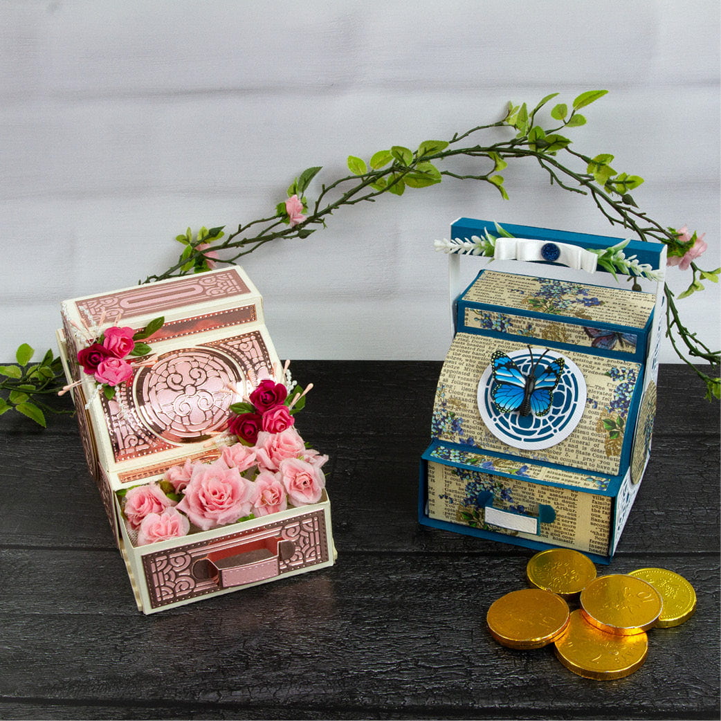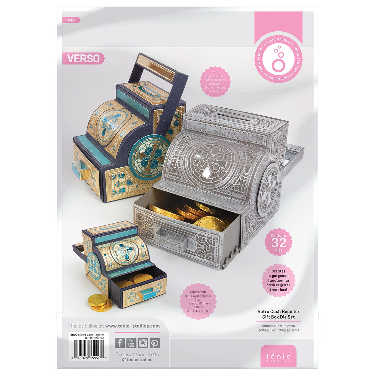 Craft the perfect keepsake with our brand-new Retro Cash Register Gift Box Die Set! Creates a beautifully detailed, instantly recognizable gift box. From construction to decoration, every die is designed to bring your project to life. Easy to assemble –full instructions are included inside!