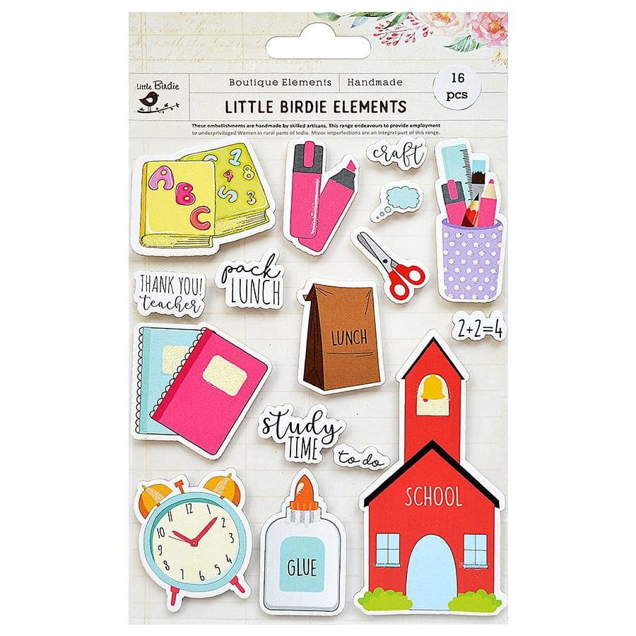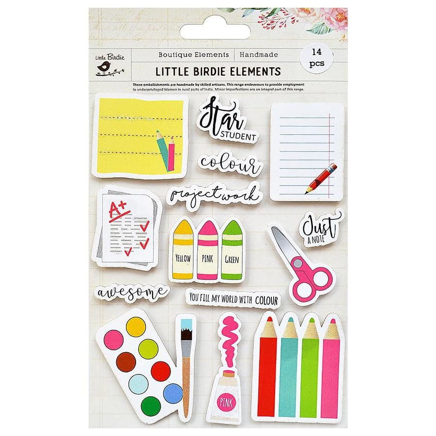 Add color and fun with these School Themed Little Birdie sticker embellishments. Just peel and stick to add these high quality adhesive embellishments to your next handmade card, gift, or scrapbook page.