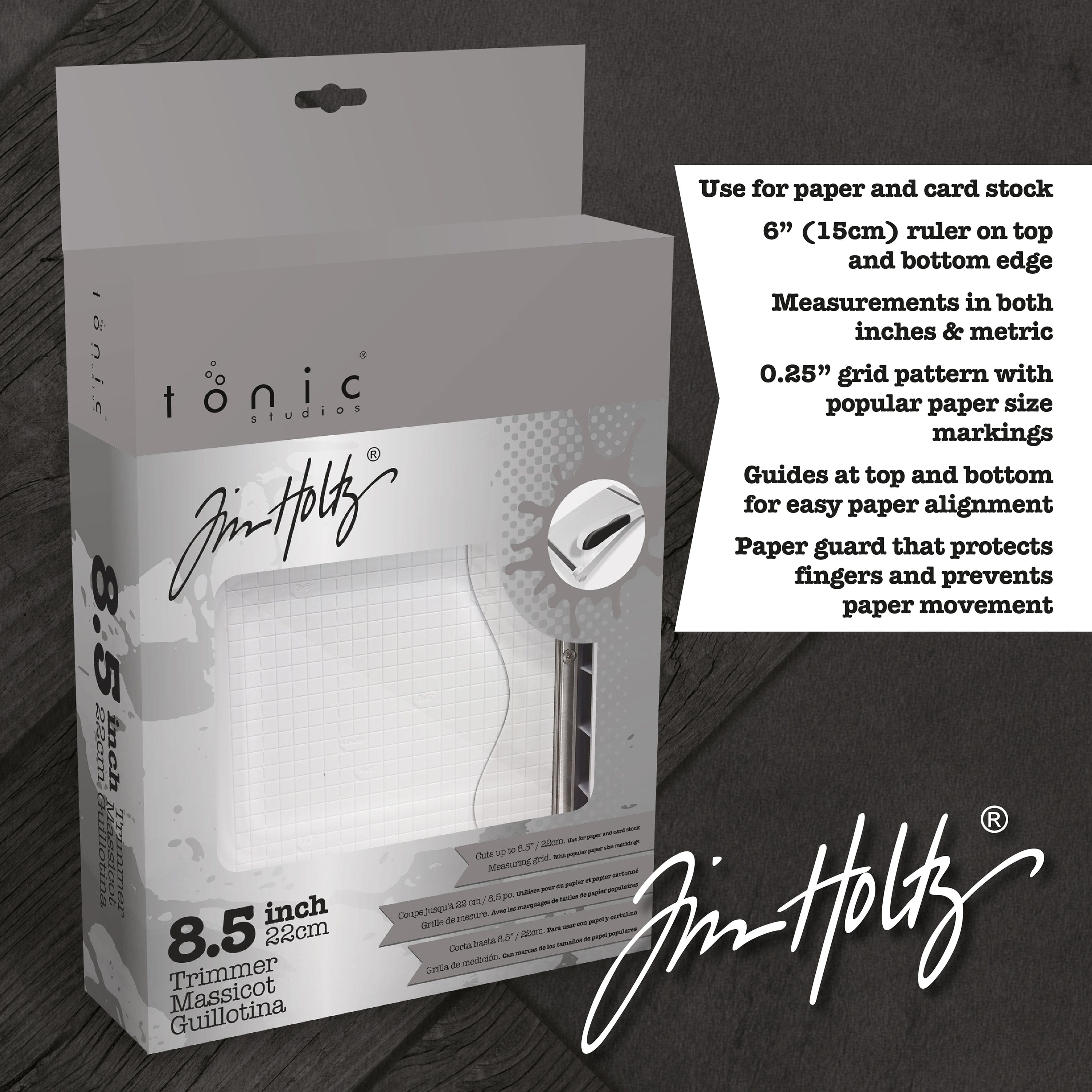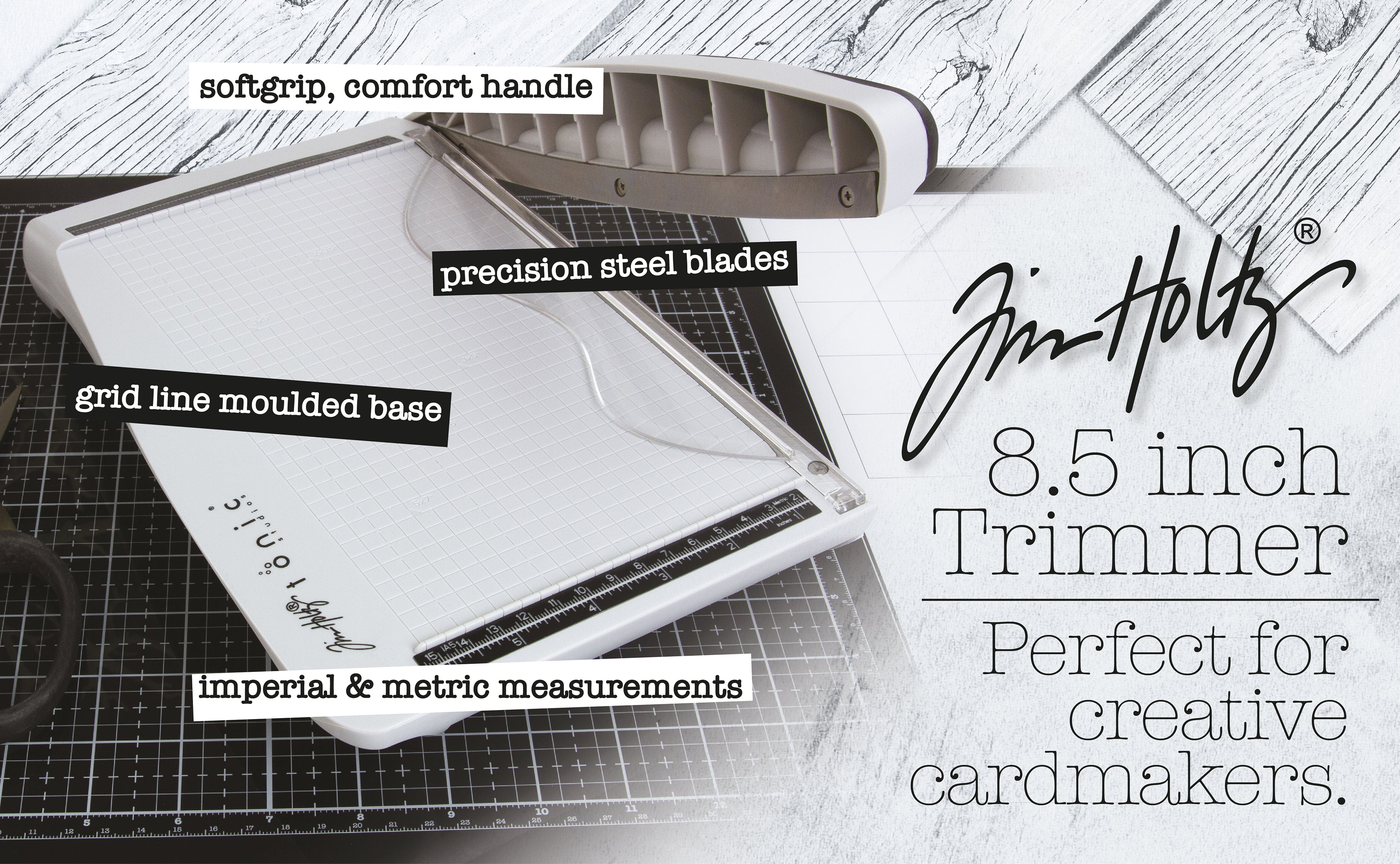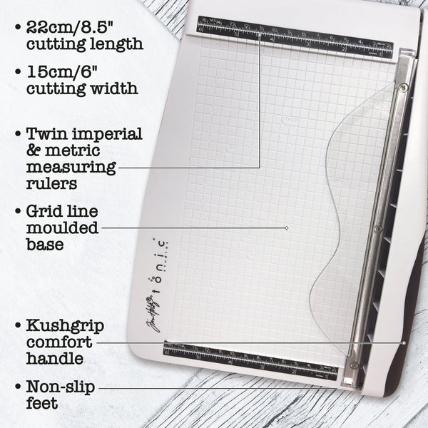 The Tim Holtz 8.5" Guillotine Paper Trimmer is packed with all the features of the larger guillotines in the range, but perfectly sized for the card-making crafter. Crafted with a hardened stainless steel precision ground blade, this quality tool offers the most accurate cutting performance possible. Other standout features include a finger bar, Kushgrip handle for comfort, and molded grid lines for perfect alignment.