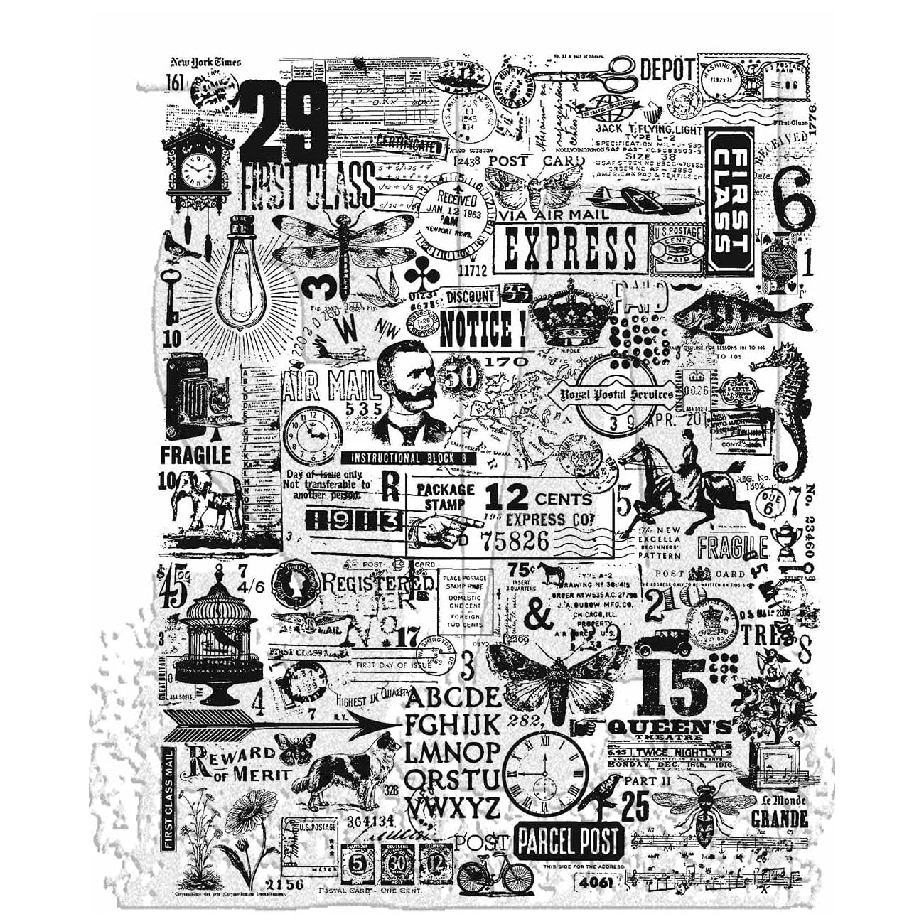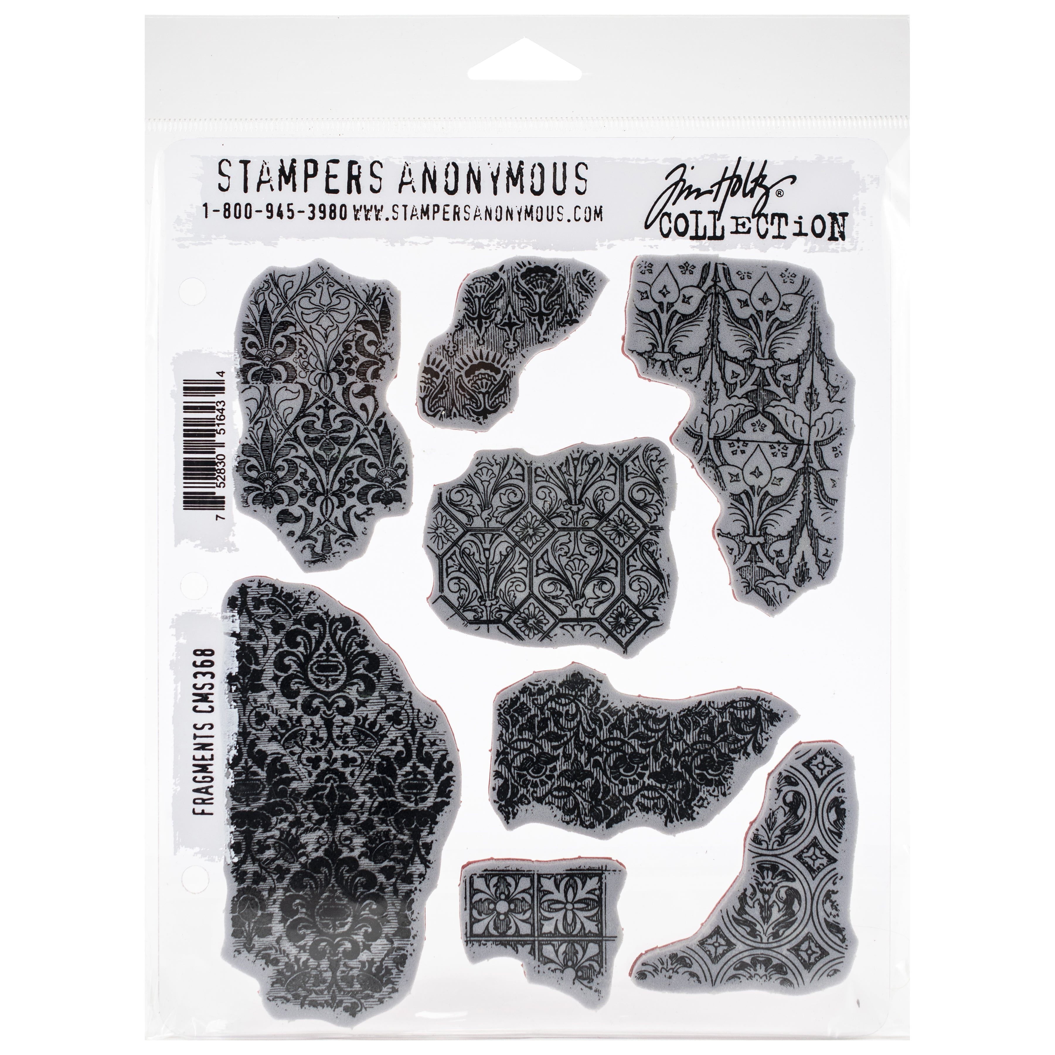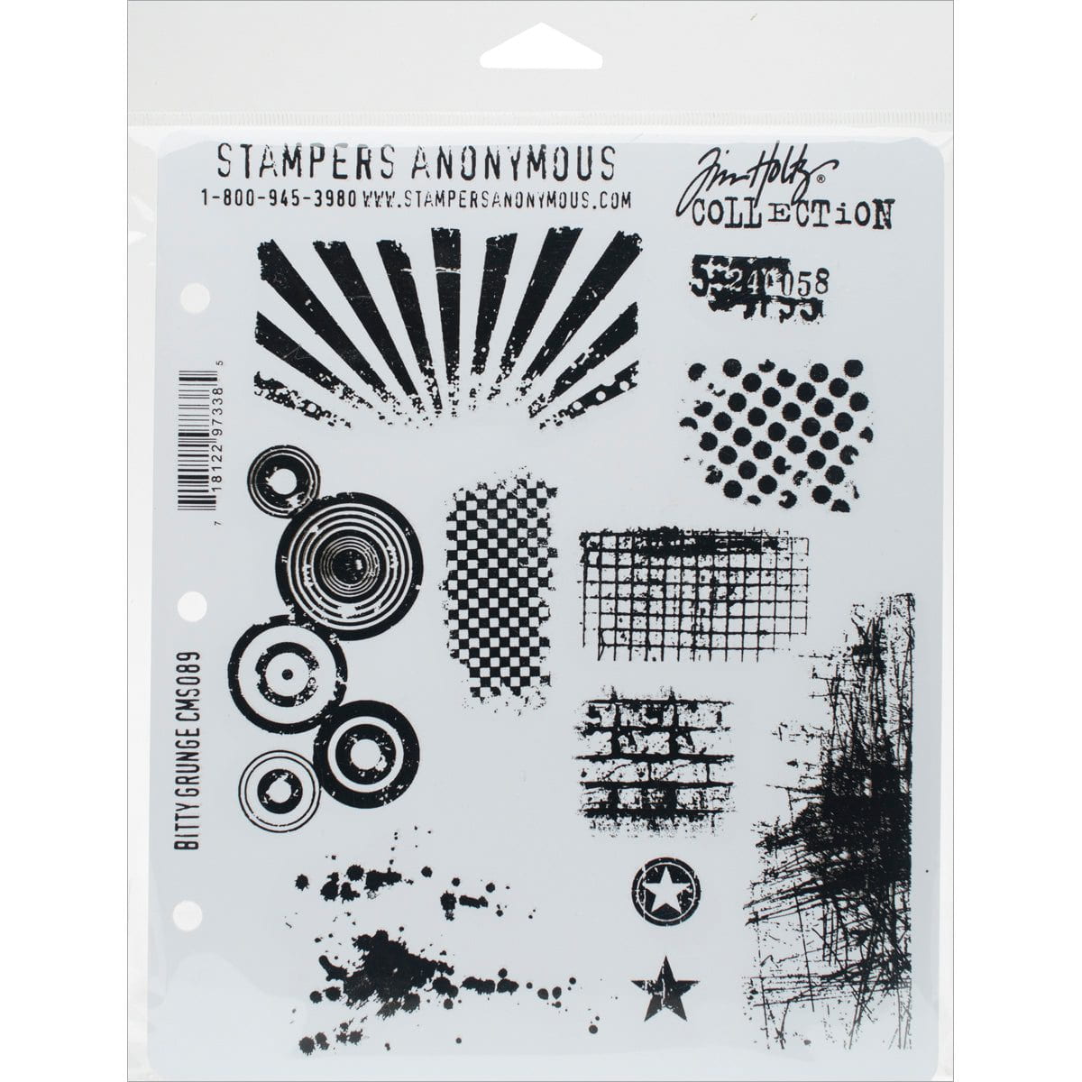Stamps come on a 3-hole punched sheet for easy storage in the Tim Holtz Stamp Storage Binder (also sold separately). Each package contains one 7" x 8.5" sheet of stamps. Comes in a variety of designs, each sold separately. Made in USA.