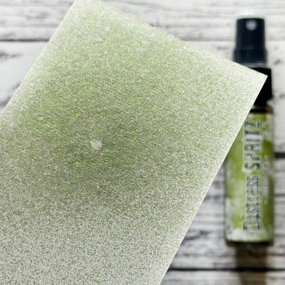 Tim Holtz Distress Spritz is a luminous spray that coordinates with the Distress color palette to add colorful shimmer to your favorite Distress products!