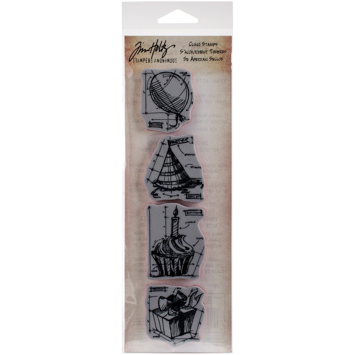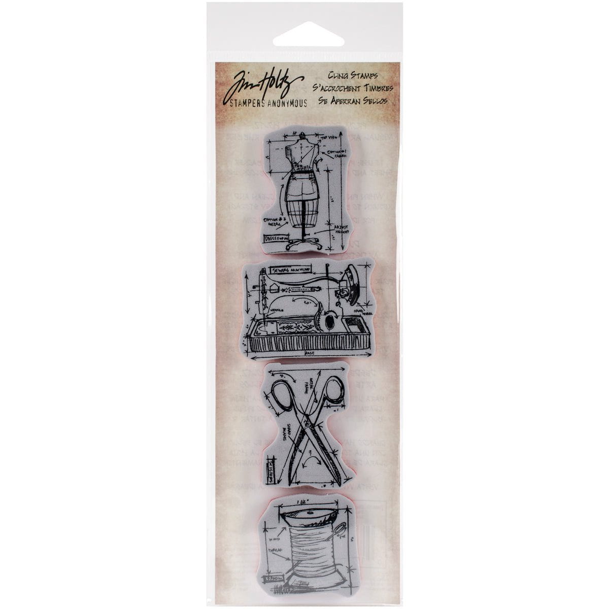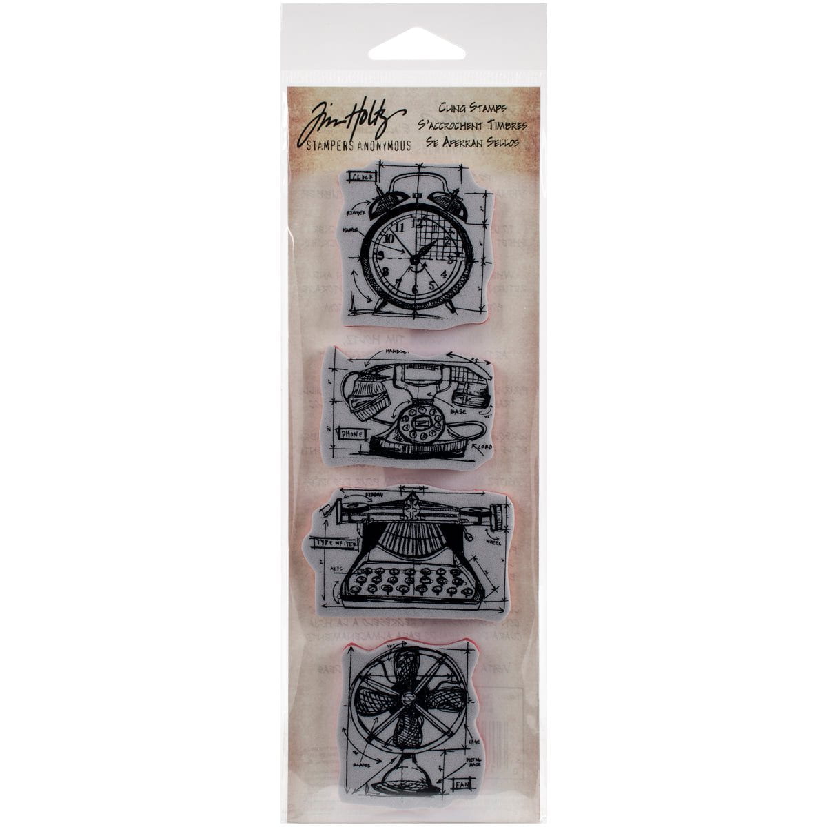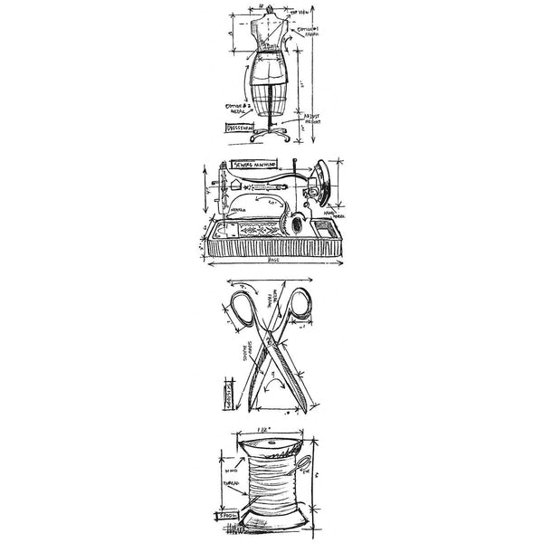 The Mini Blueprints Stamp Set features thick foam stamps with deeply etched rubber in unique Tim Holtz designs. The stamps cling to any clear acrylic block and are neatly trimmed.