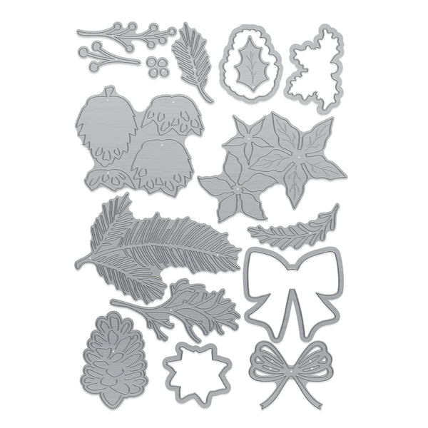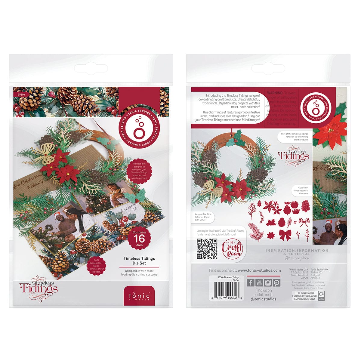 This charming die set features gorgeous festive icons, and includes dies designed to fussy cut your Timeless Tidings stamped and foiled images!