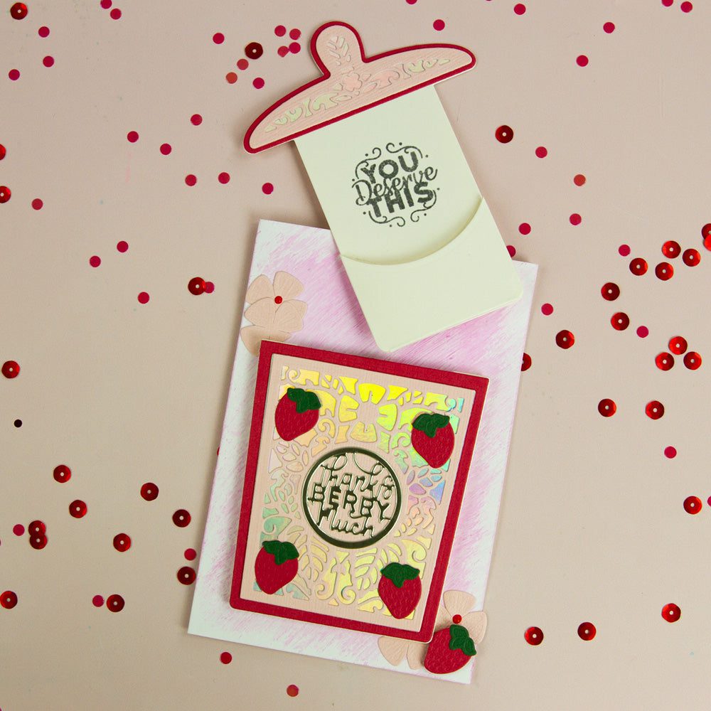 Introducing the latest Tonic Craft Kit arrival - a set that helps you create fun cards with a hidden gift card holder! The set features a stunning Jam Pot design that comes equipped with a secret gift card slider, making it an ideal choice for birthdays and thank-you gifts. For even more creative options, pair it with the coordinating stamp set to design delightful cards that are sure to impress!