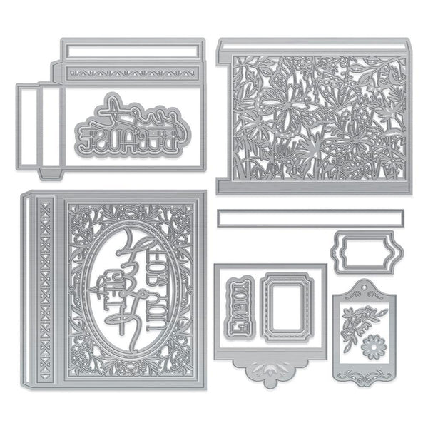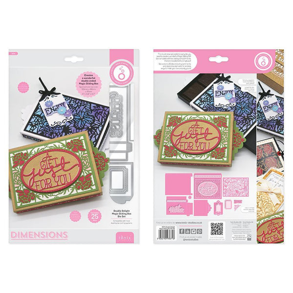 This must-have set contains every die you need to create a wonderful Magic Sliding Gift Box complete with two sliding compartments that are revealed with a single pull! Set contains 25 dies including sentiments and decorative elements for endless ways to make your box uniquely yours!