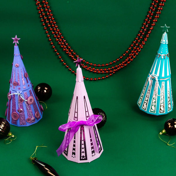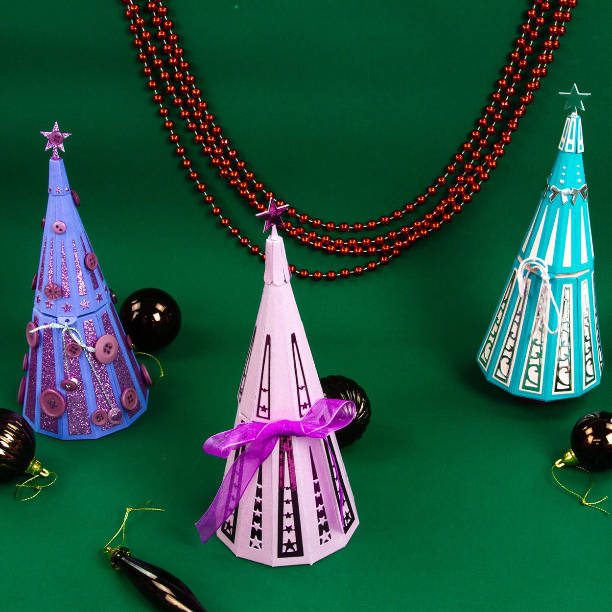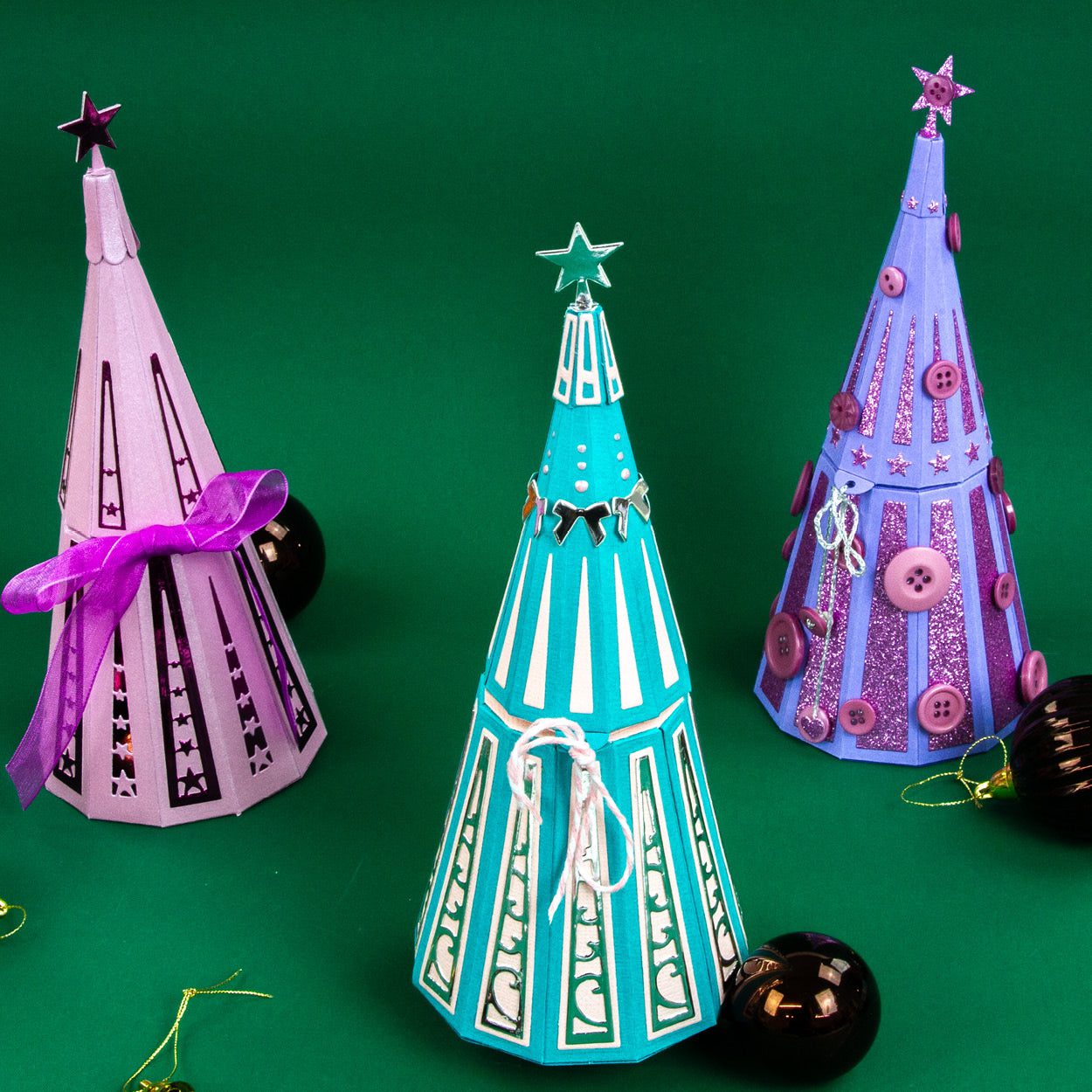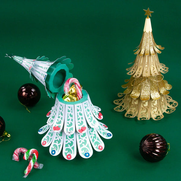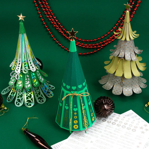 Create two uniquely shaped Christmas tree gift boxes! This set includes all the dies necessary to assemble and embellish your gift boxes. The charming design allows for easy assembly while offering endless opportunities for decoration. Complete instructions are included inside.